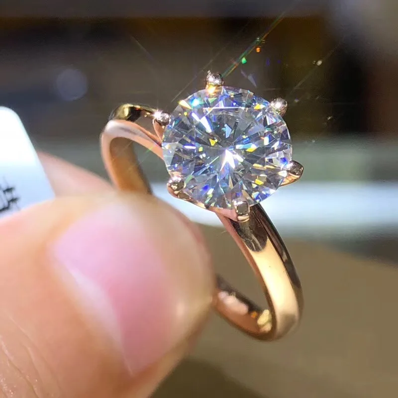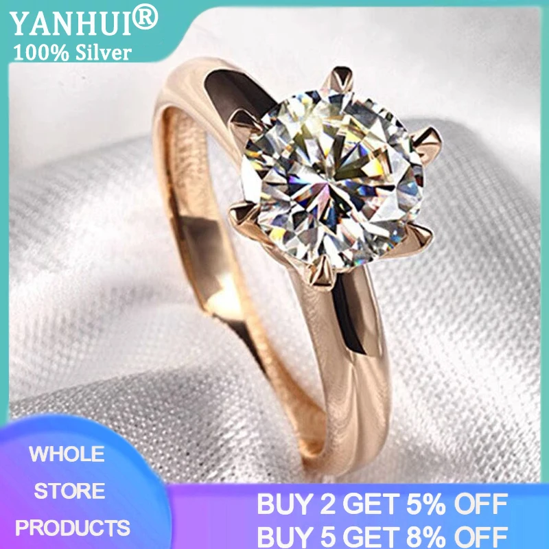 YANHUI тибетское Серебро S925 розовое золото заполненный антиаллергенный простой солитер 2.0ct обручальные кольца для женщин подарок ювелирные изделия R170