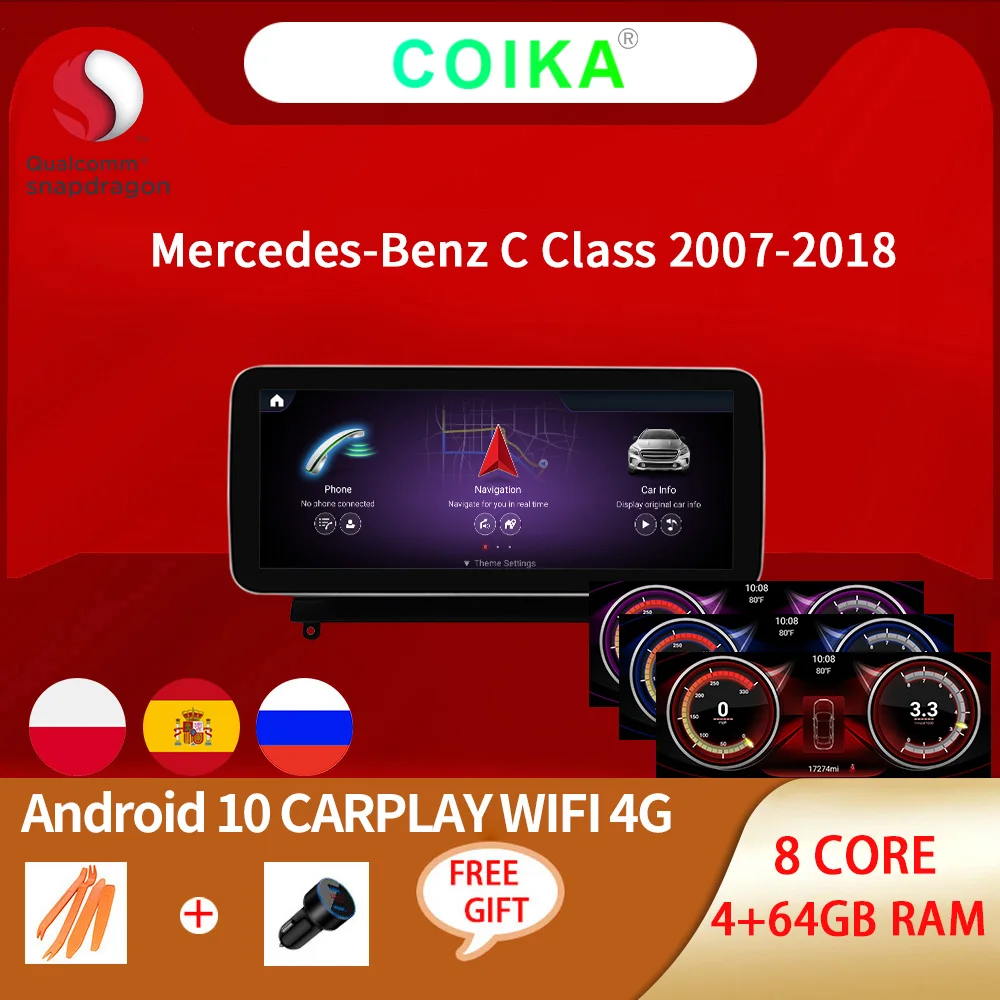 8-ядерный Автомобильный мультимедийный радиоприемник Android 10 для Mercedes W204 W205 X253 2007-2018 4 + 64 Гб WIFI SIM DSP Carplay GPS навигатор плеер