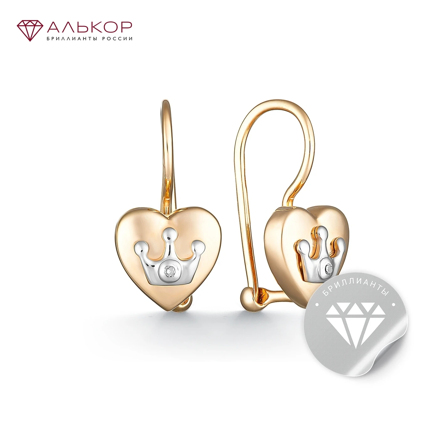 Серьги французский замок из позолоченного серебра c бриллиантами АЛЬКОР. Быстрая доставка с ювелирной фабрики в России