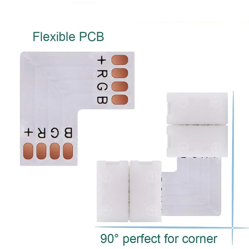 Разъем для светодиодной ленты RGB RGBW, 10 мм, 4 контакта12 мм, 5 контактов, L-образный для подключения углов, прямоугольный разветвитель, кабель 1to2 без пайки