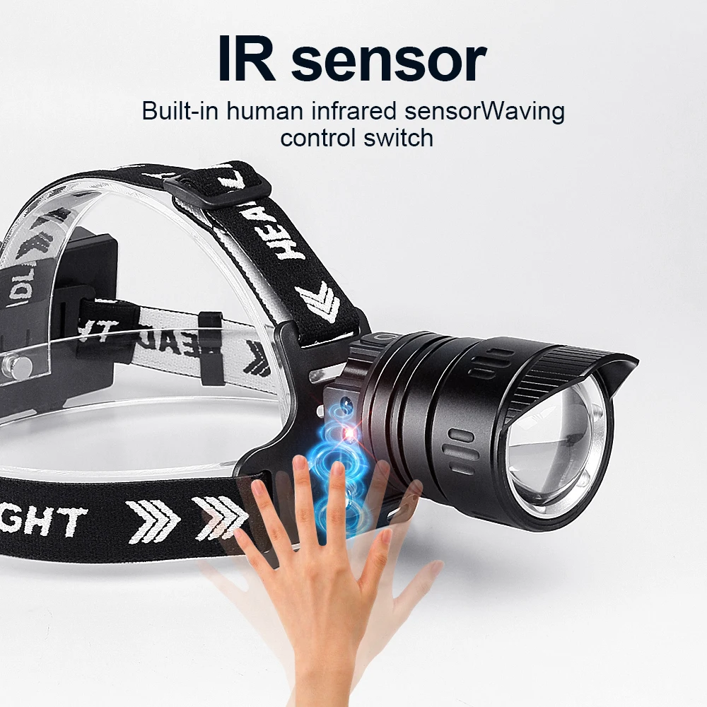 Самый мощный светодиодный налобный фонарь XHP199, 16 ядер, фонарь высокой мощности, перезаряжаемая фара 18650, фонарь для кемпинга
