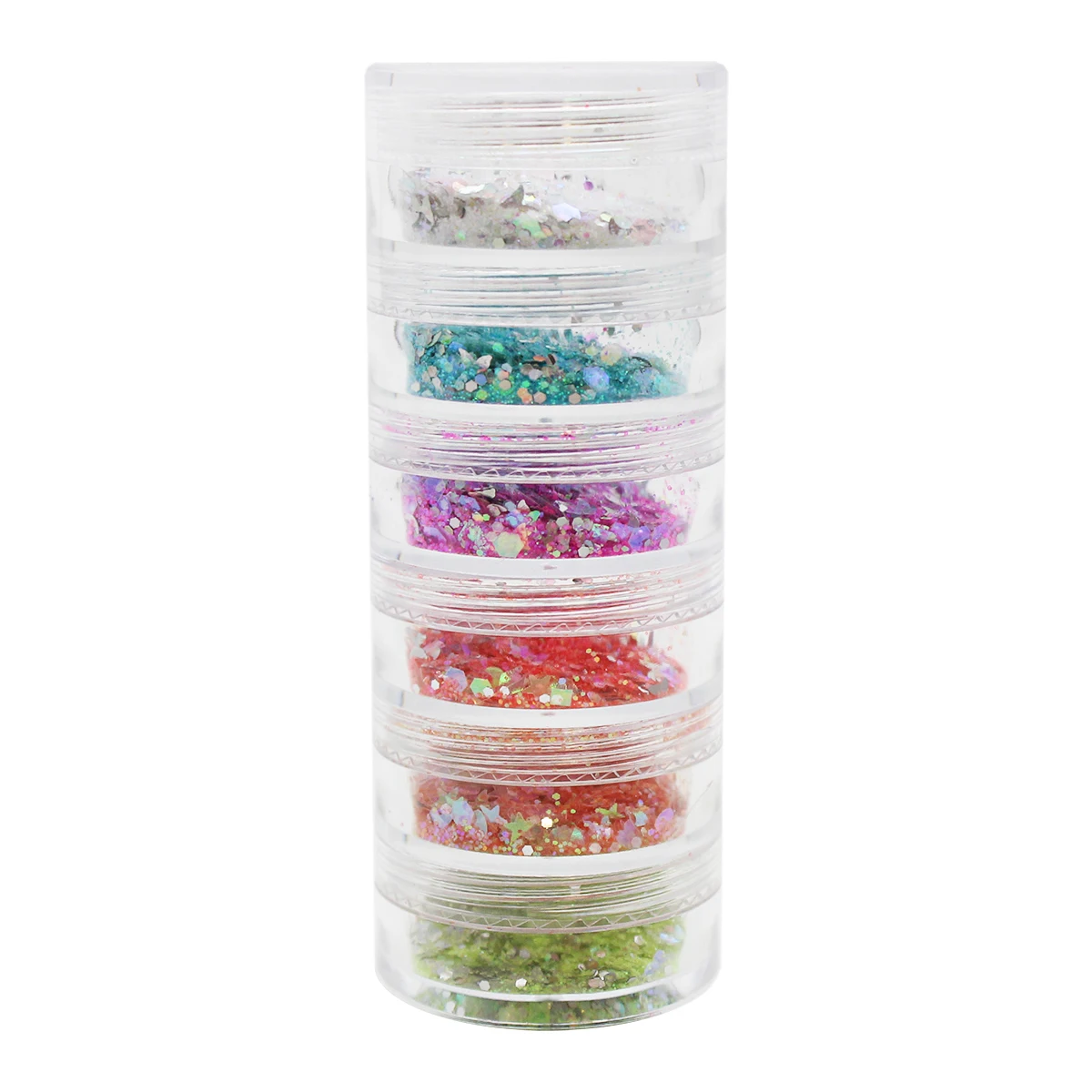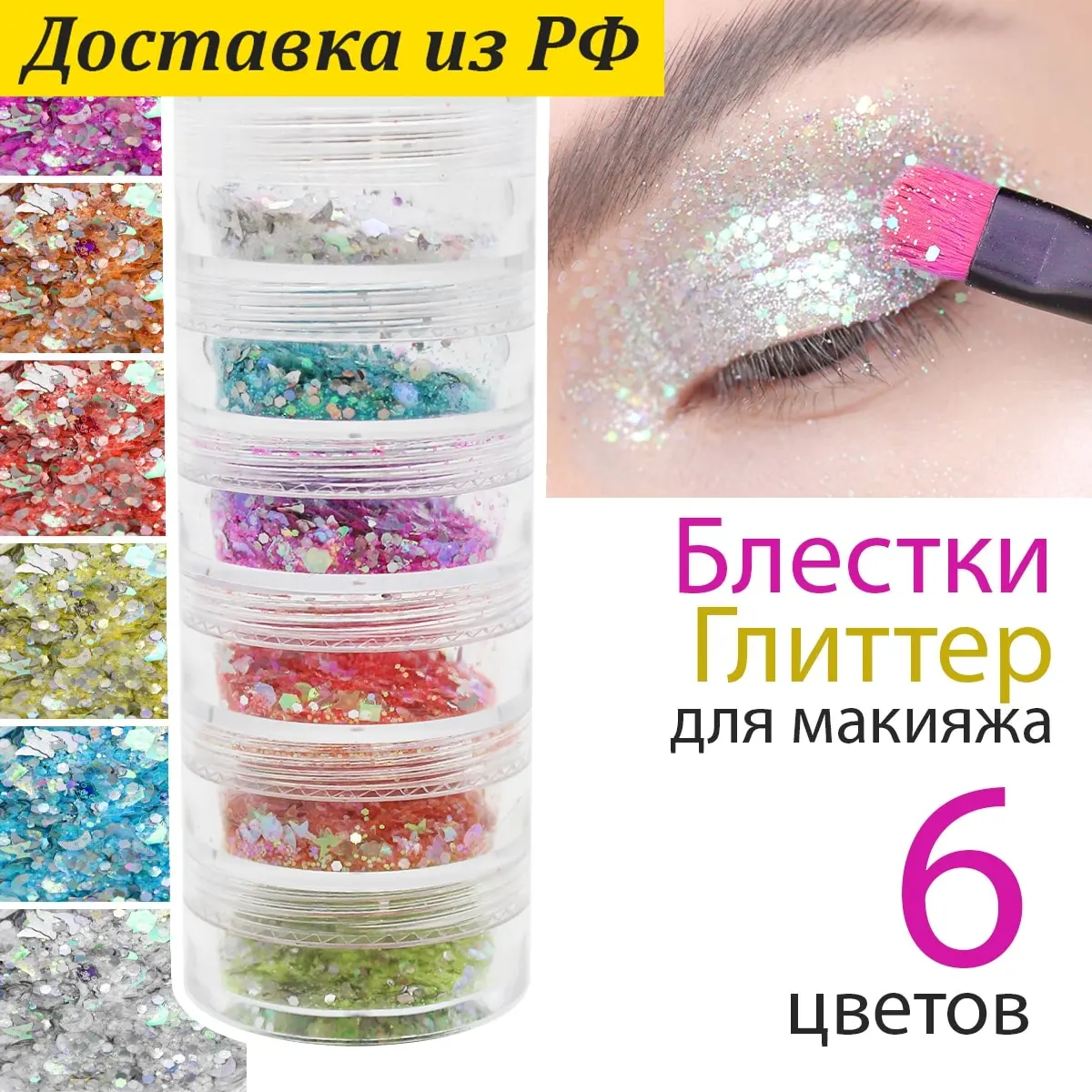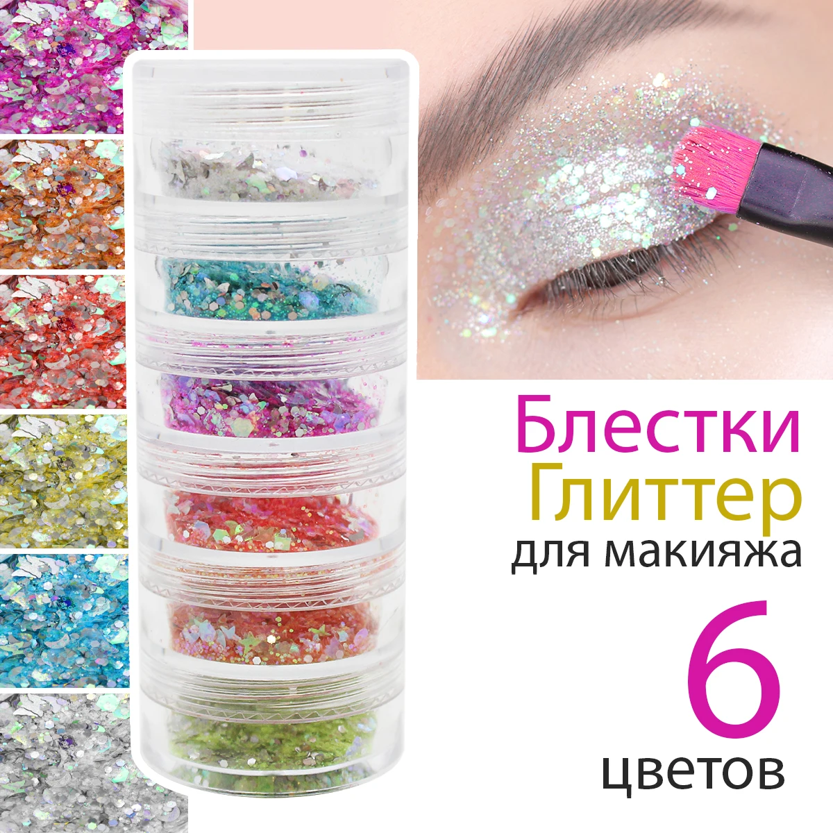 IMAN of NOBLE Блестки Глиттер 6 оттенков N2 с Белым для макияжа, мелкий, набор, для лица, для творчества, для глаз