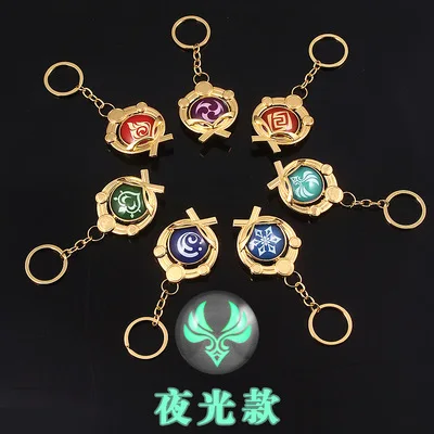 Брелок для ключей, 7 шт.компл. Genshin Impact Eye of God 7 элементов Pyro Cryo Anemo Geo Electric Dendro Hydro логотип, светящийся сплав