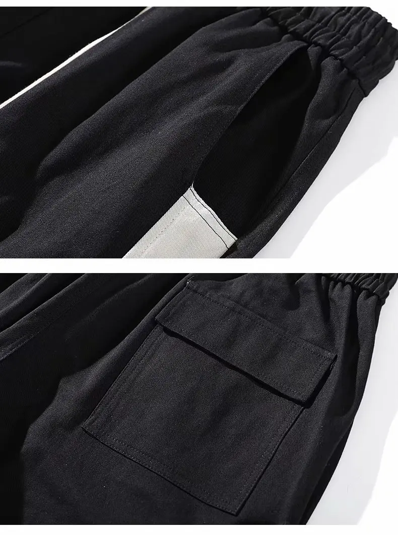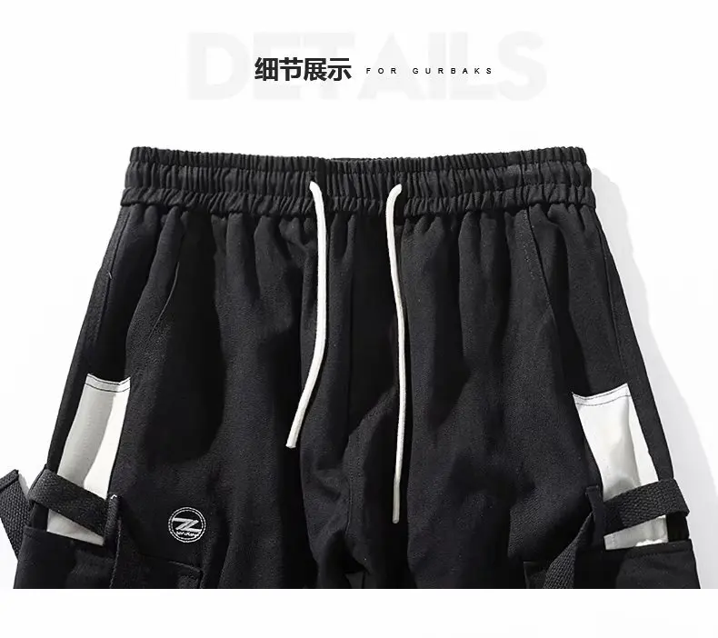 Брюки-карго мужские черные, джоггеры, тренировочные штаны, брюки-карго, корейский стиль, спортивная одежда, ленты в стиле хип-хоп, белые