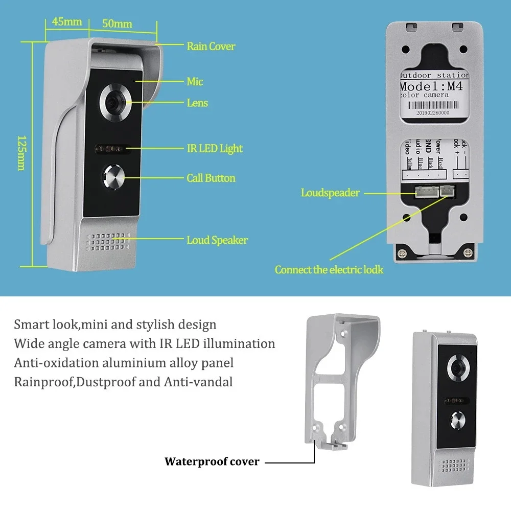 Эта система видеодомофона может работать с электрическим замком. Вы можете открыть дверь с помощью внутреннего монитора. Не нужно идти, чтобы открыть дверь для вас. Очень удобно!