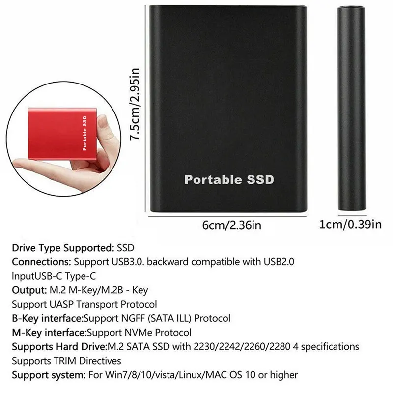 16 ТБ SSD Портативный внешний 500 Гб SSD твердотельный накопитель T...