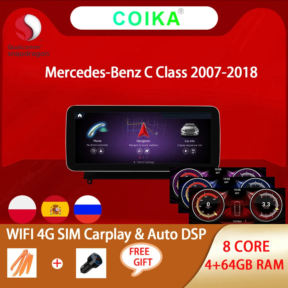 Snapdragon Android 10 Автомобильный мультимедийный радиоприемник для Mercedes C-Class W204 W205 X253 2007-2018 GPS навигационный экран PIP Carplay DSP 8 ядер