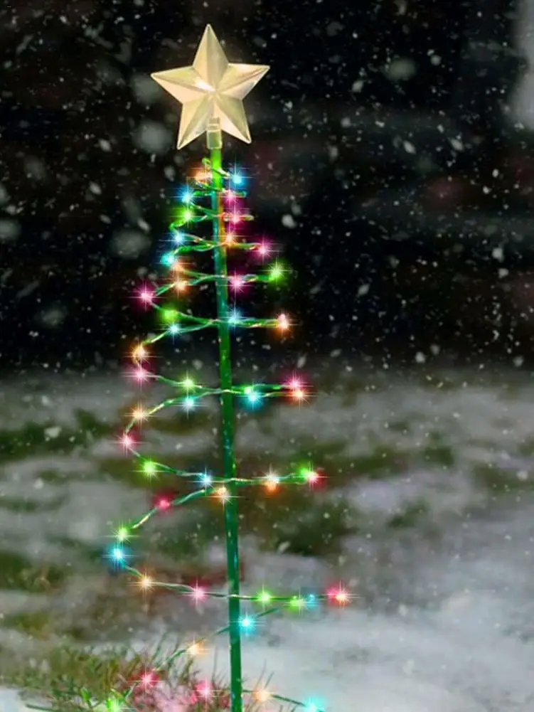 Спиральный светильник для рождественской елки, романтический рождественский светильник на спирали с солнечной батареей, садовые светильники, устойчивые к атмосферным воздействиям и цветные автоматически
