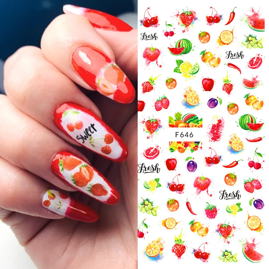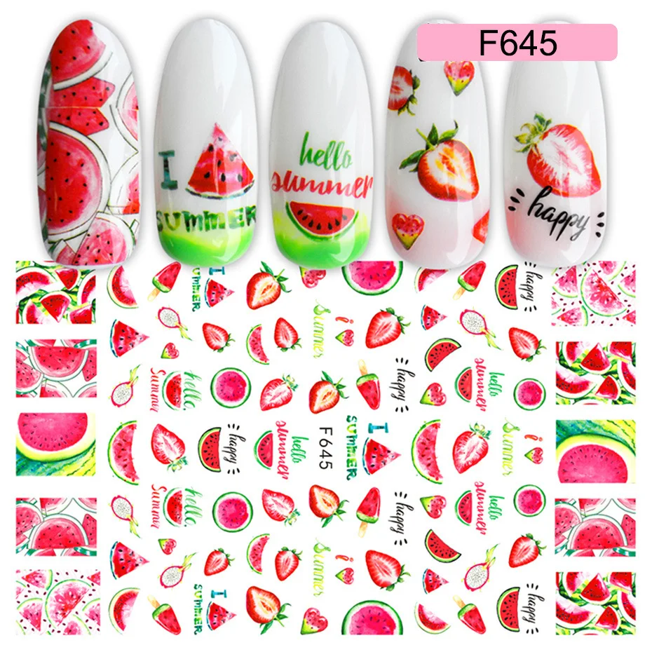 3D Лето клей ползунки фрукты листья для ногтей наклейки для ногтей ...