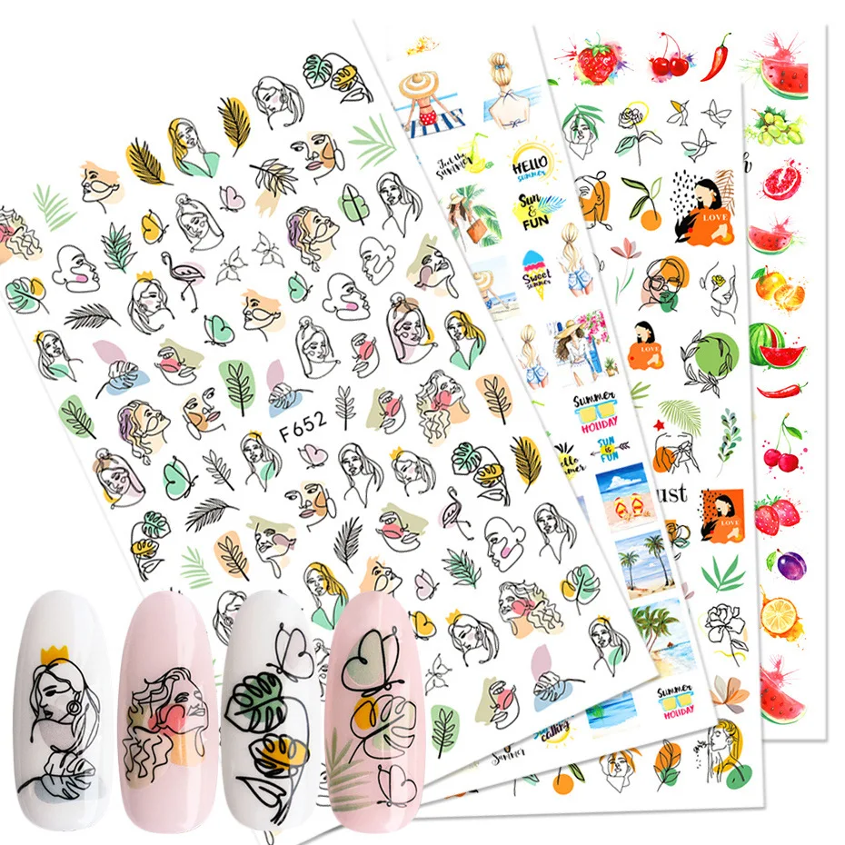 Геометрическая Женская лицевая наклейка для ногтей, цветы, листья, украшения для ногтей, фруктовая Фольга для ногтей, аксессуары для маникюра, красочные наклейки для ногтей