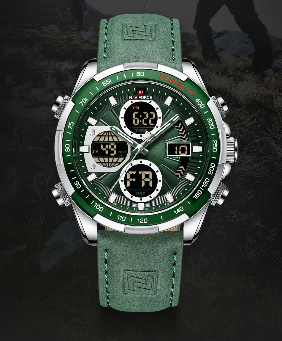 Спортивные часы NAVIFORCE для мужчин, Роскошные зеленые наручные часы с кожаным ремешком, мужские военные часы, модные наручные часы, мужские часы