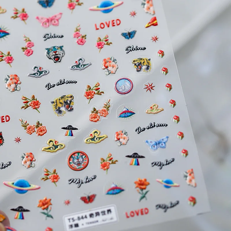 Японские 5D наклейки для ногтей Бабочка перья медведь Роза рельеф п...