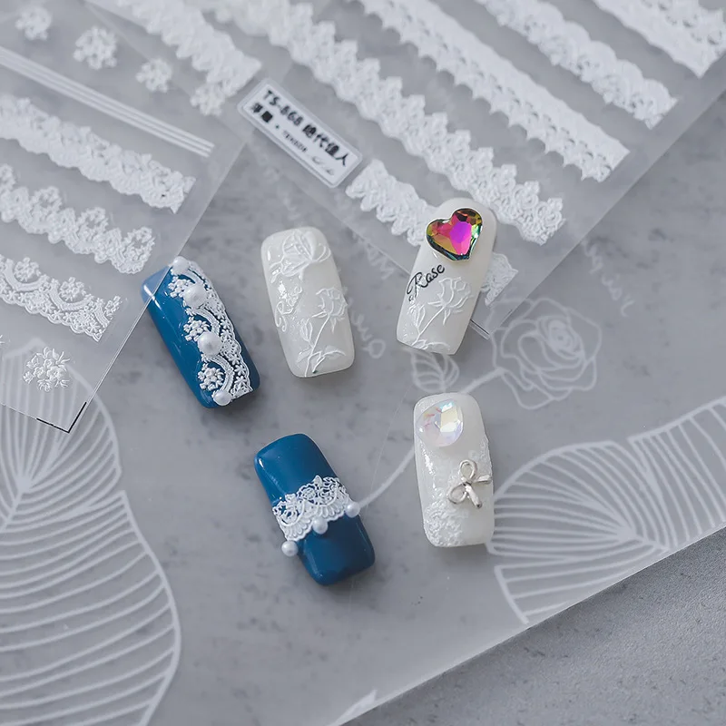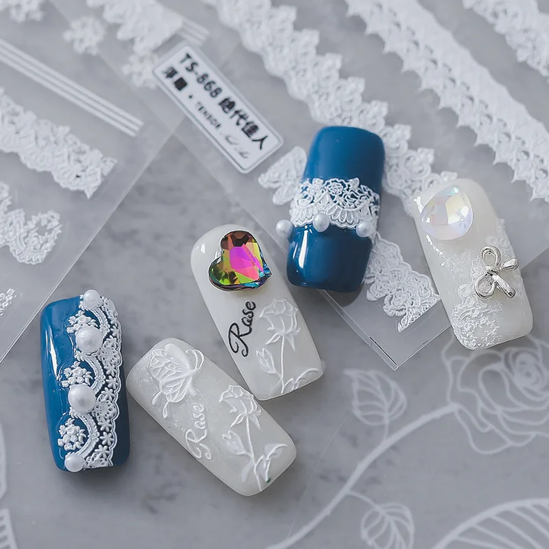 5D акриловая гравированная наклейка для ногтей, кружевной Шарм-дизайн для свитера, Самоклеящиеся Переводные Слайдеры для ногтей, обертывания, маникюр, фольга для творчества Z0544