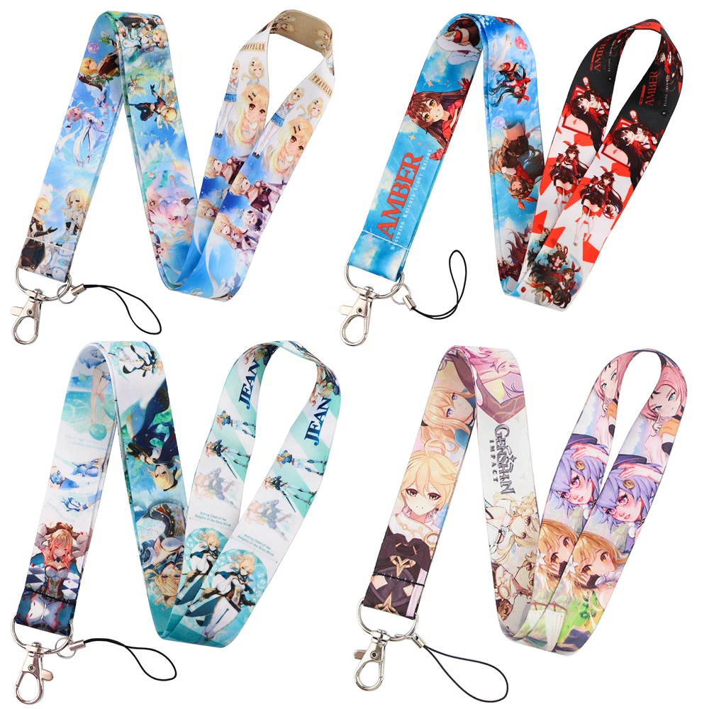 Ударопрочный шнурок FD0805 Genshin, Мультяшные ремешки на шею для подвесок, брелок для ключей, USB-шнурок для телефона, держатель для ID-карты, брелок, лассо
