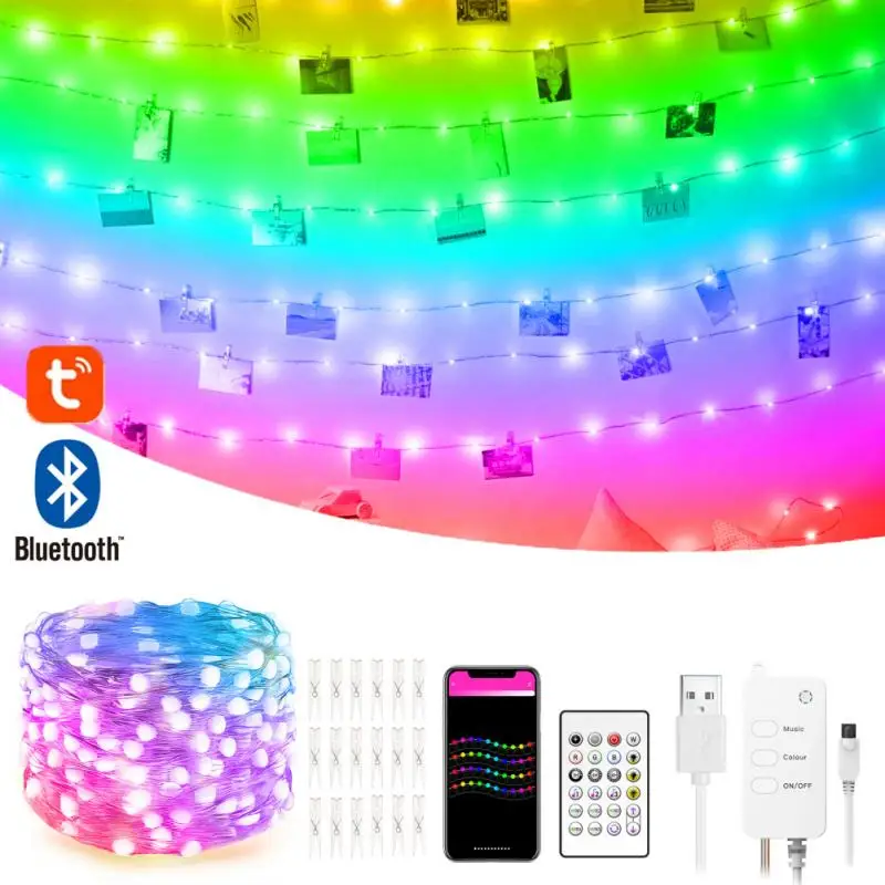 Умная светодиодная гирлянда Tuya с Wi-Fi, s RGB сказочная лампа, светодиодный ночсветильник для дома, украшение для новогодней елки, подсветка