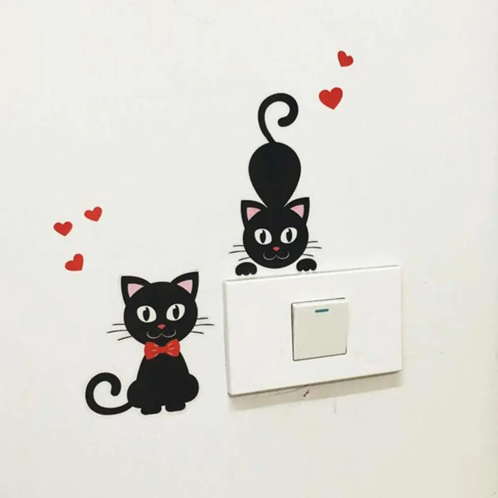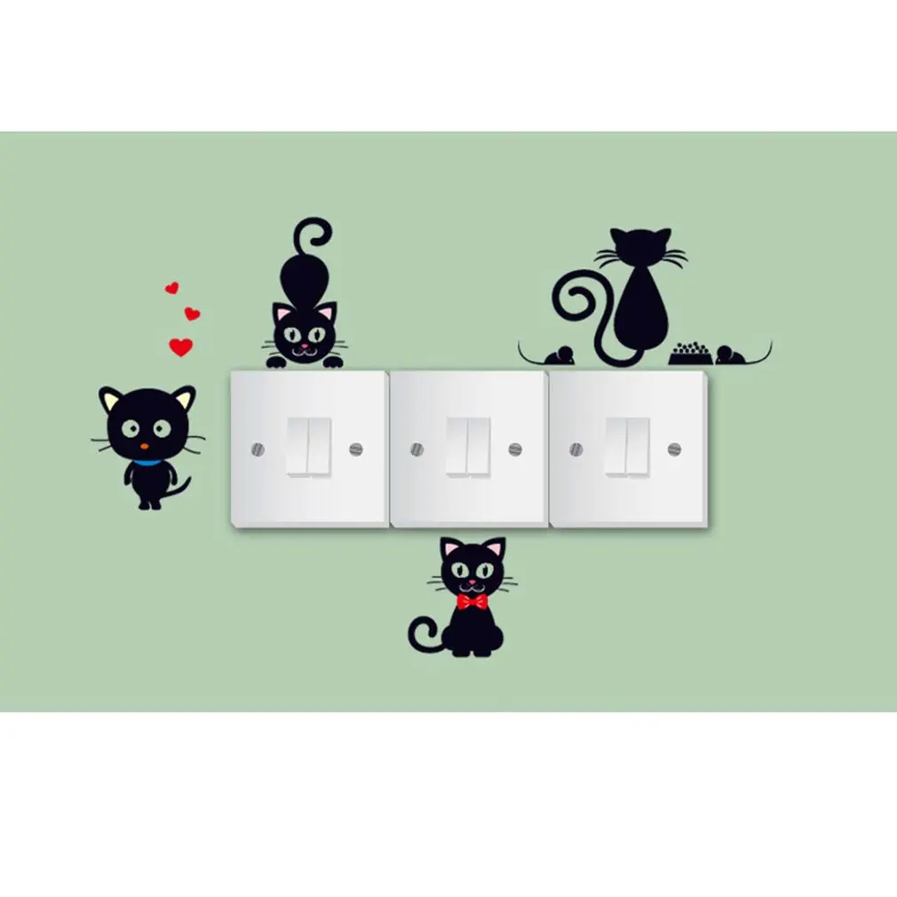 Настенный выключатель с изображением кошки, декоративные съемные настенные наклейки, самоклеящиеся Мультяшные украшения для спальни, гостиной, домашний декор, художественные настенные наклейки
