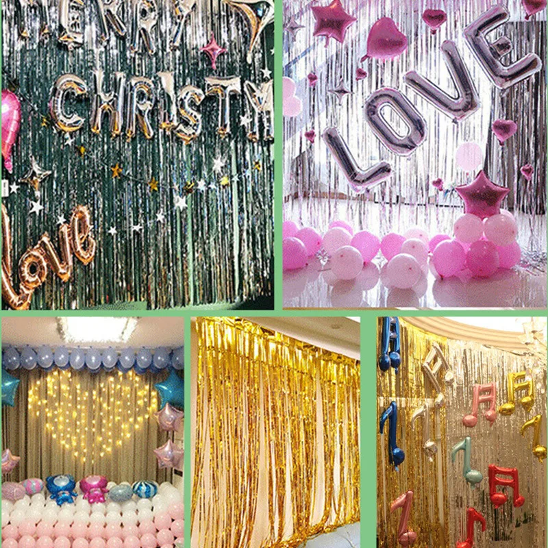1 шт. Декорации для дня рождения блестящие занавески, длина 2 м, Ме...