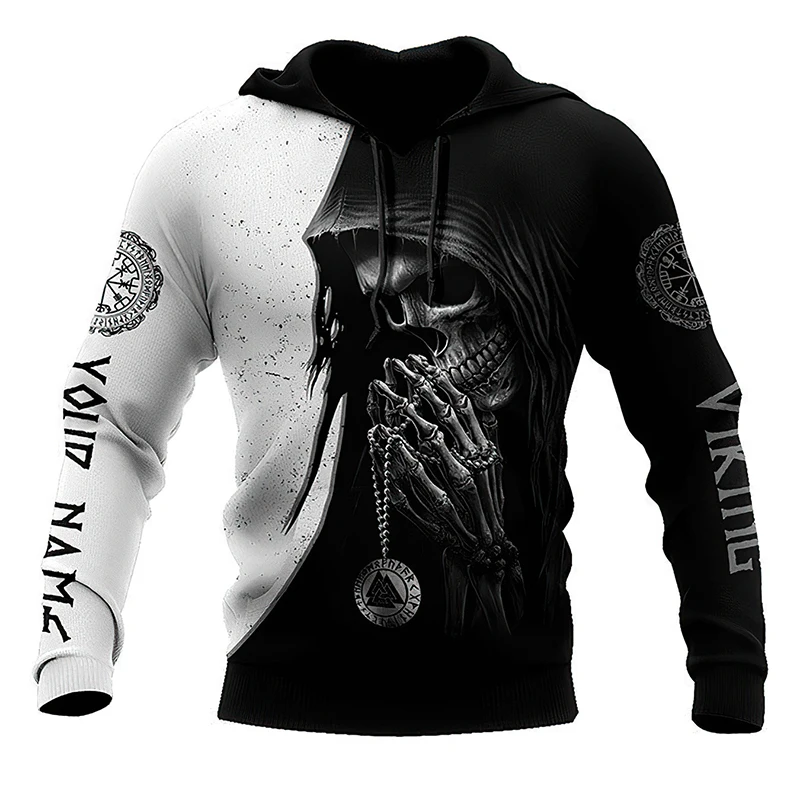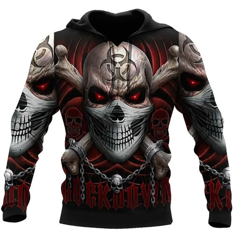 Толстовка мужская с 3D-принтом черепа, черная уличная одежда, пулов...