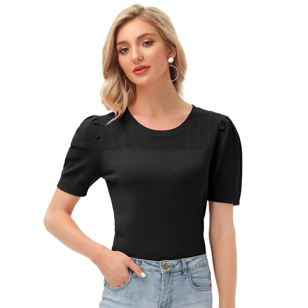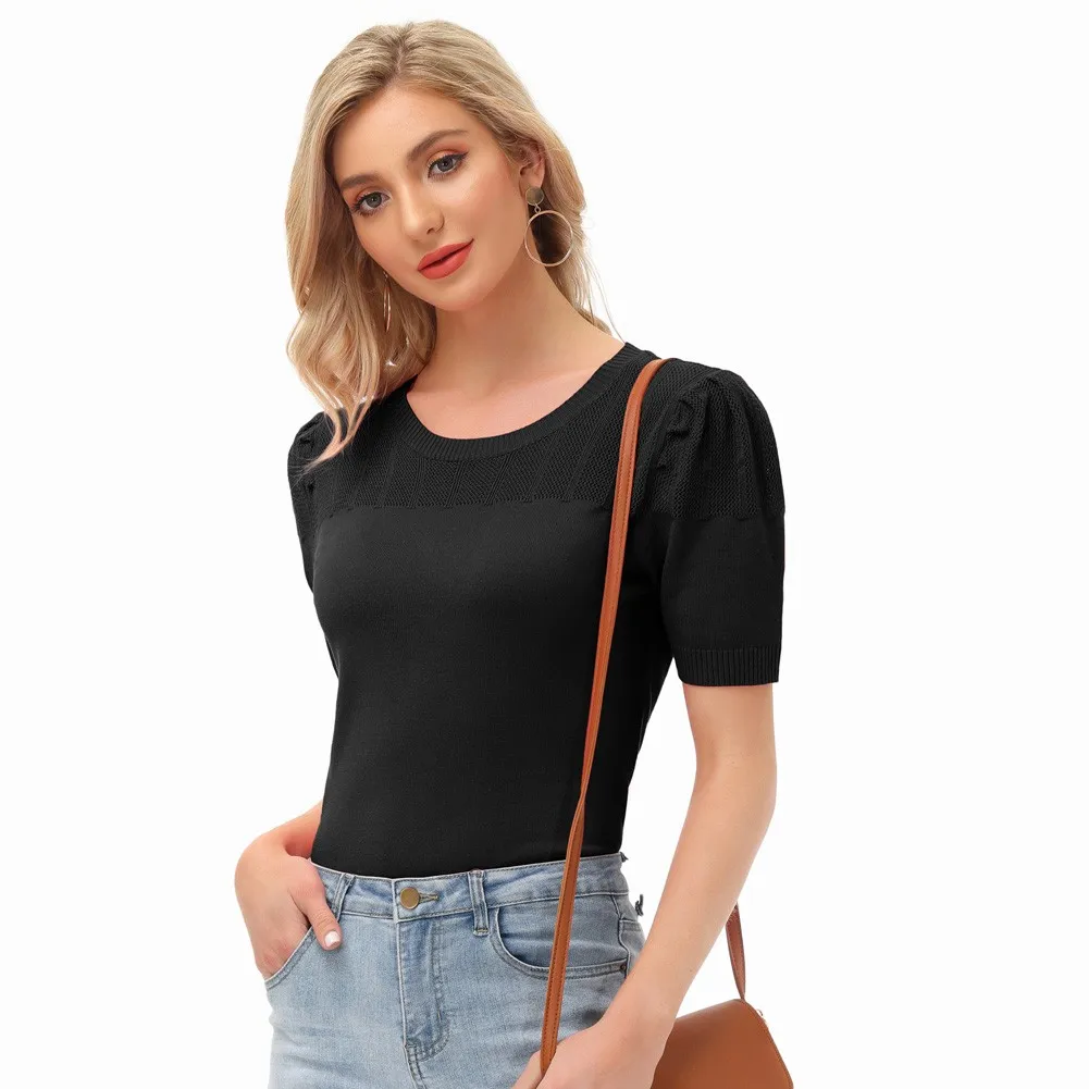 Женский пуловер с вырезами GK, вязаные пуловеры с коротким рукавом, трикотажные джемперы с круглым вырезом и котятами, Свободный Топ в стиле Харадзюку