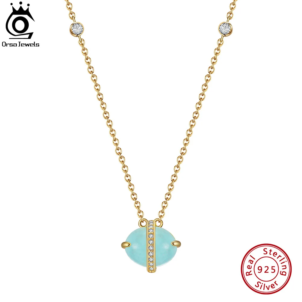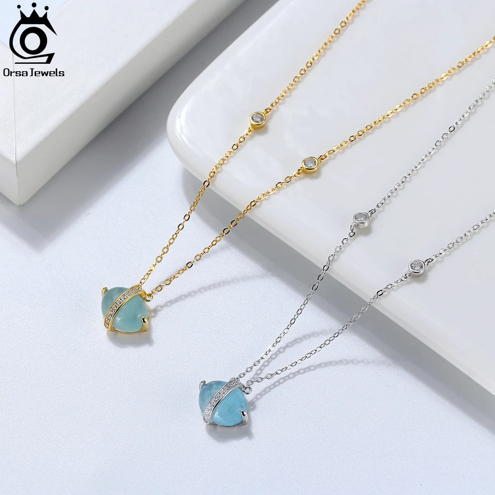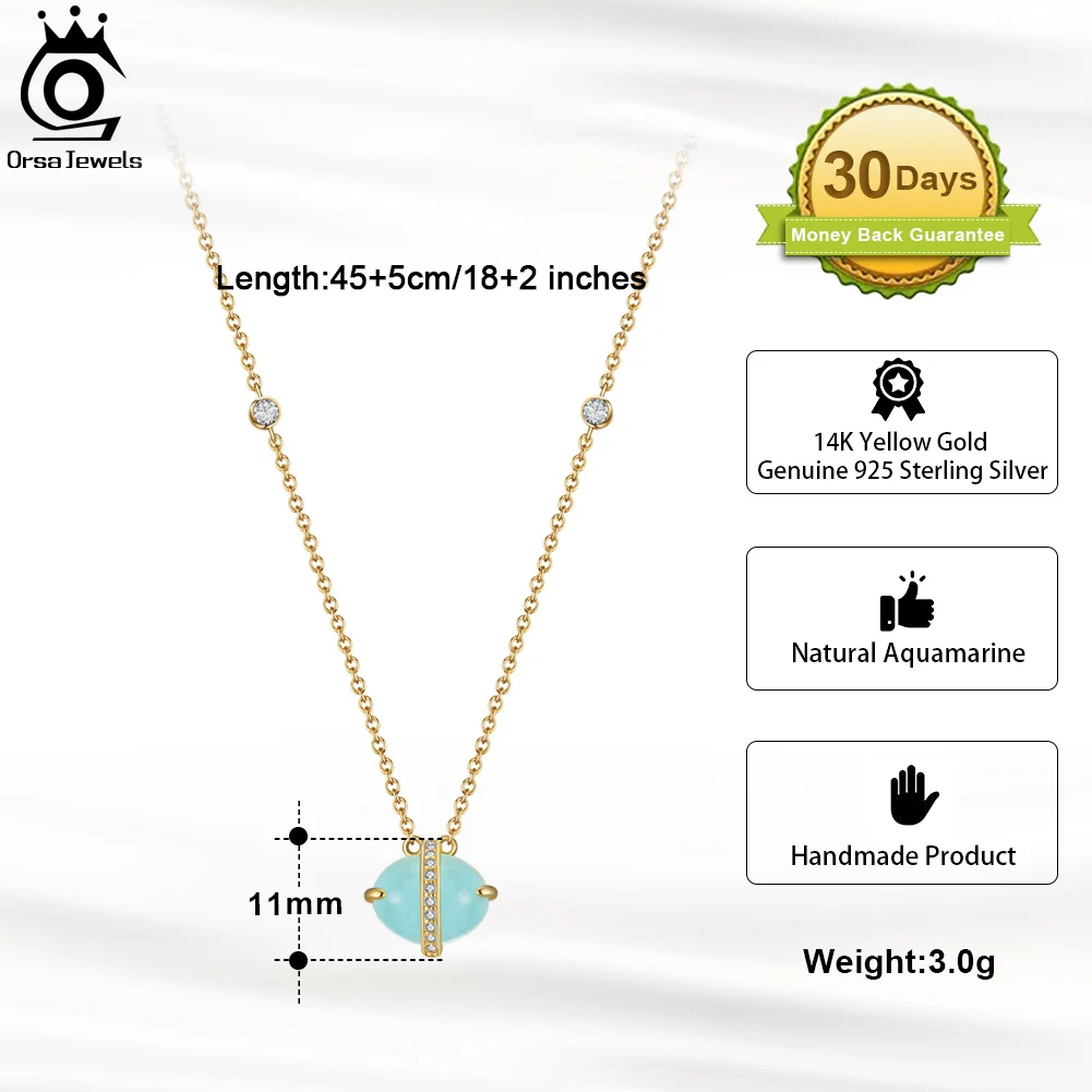 ORSA JEWELS 100% Подвеска из натурального аквамарина, ожерелье из серебра 925 пробы, ювелирные изделия из драгоценных камней для женщин и девочек GMN04