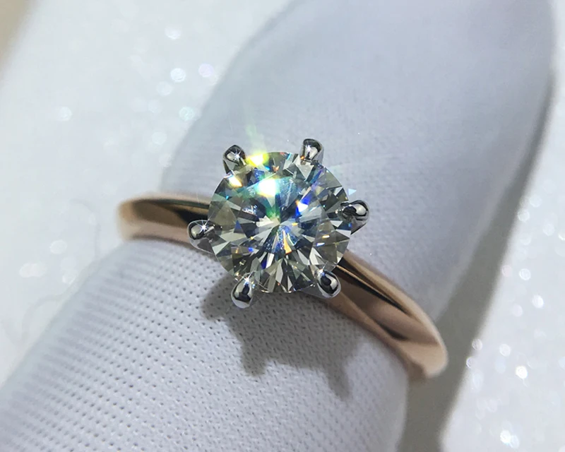 LMNZB оригинальные 2 карат 8 мм круглые фианитовые кольца из желтог...