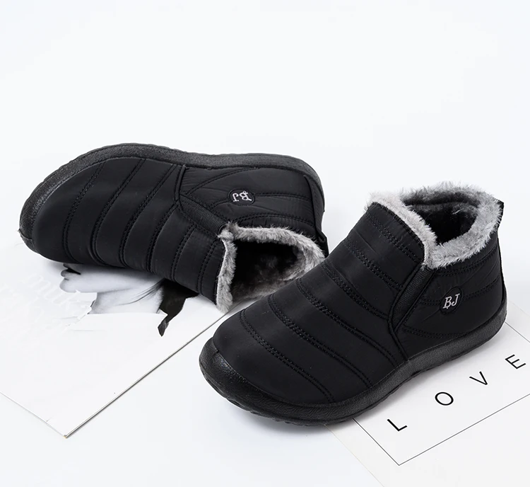 Ботинки женские зимние, теплые, черные, водонепроницаемые, 2021