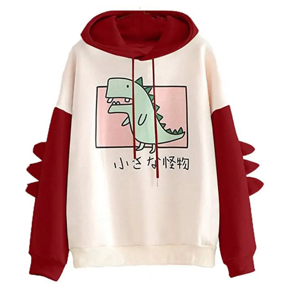Свитшот с длинным рукавом и рисунком динозавра, зимний свитшот для подростков и девочек с капюшоном для дома