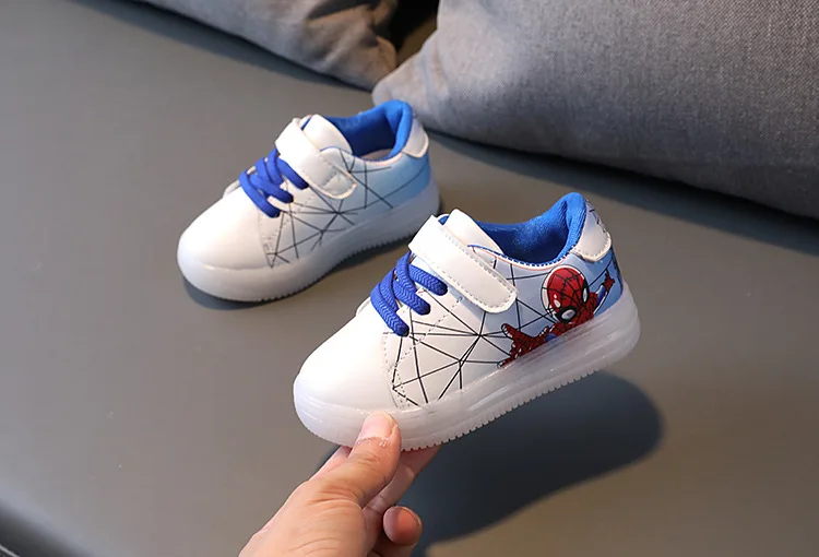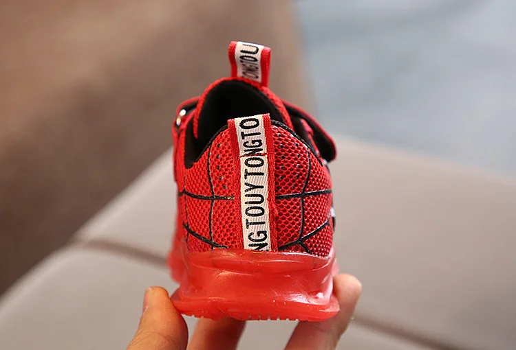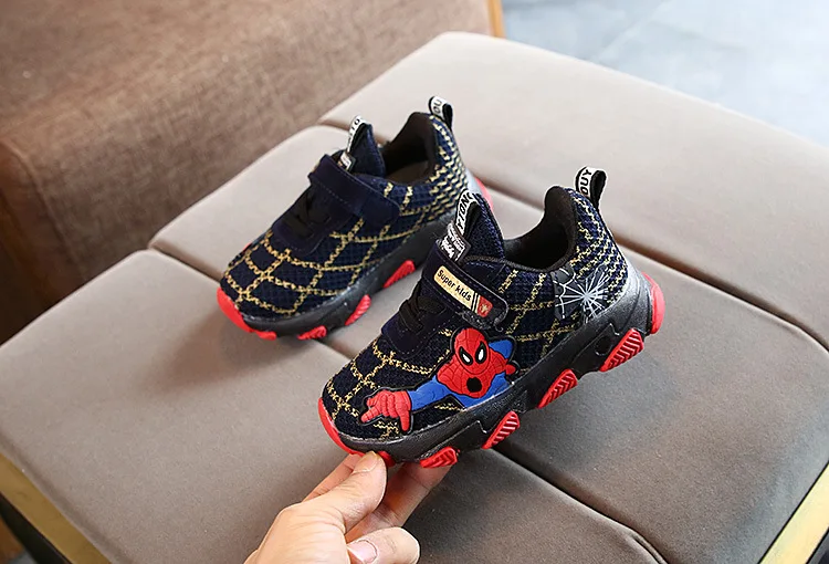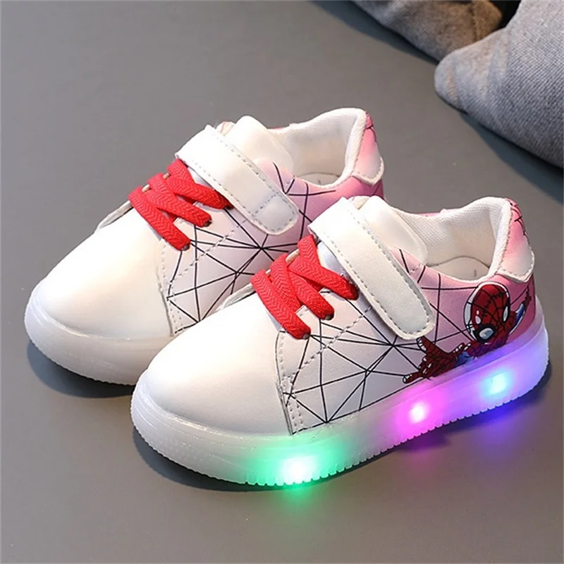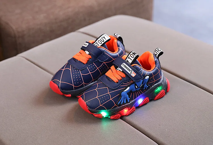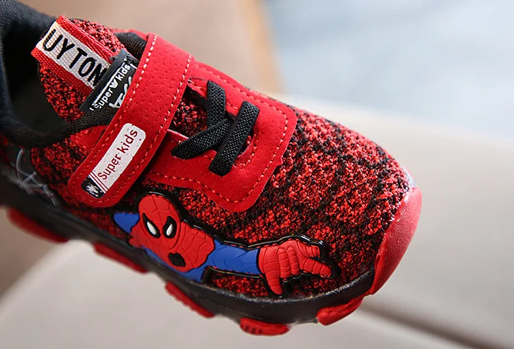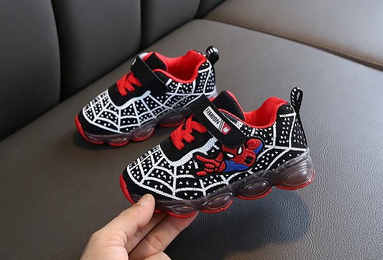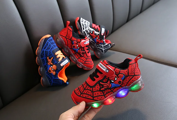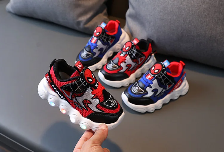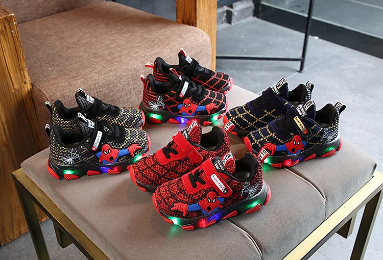 Туфли детские светящиеся со светодиодной подсветкой, туфли-спайдерманы, дышащие, для тенниса, для маленьких мальчиков и девочек