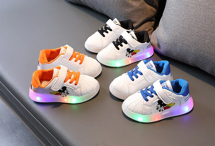 Disney светодиодный светильник; Детская светящаяся обувь; Обувь для тенниса; Детские светящиеся кроссовки; Дышащая обувь для маленьких мальчиков и девочек
