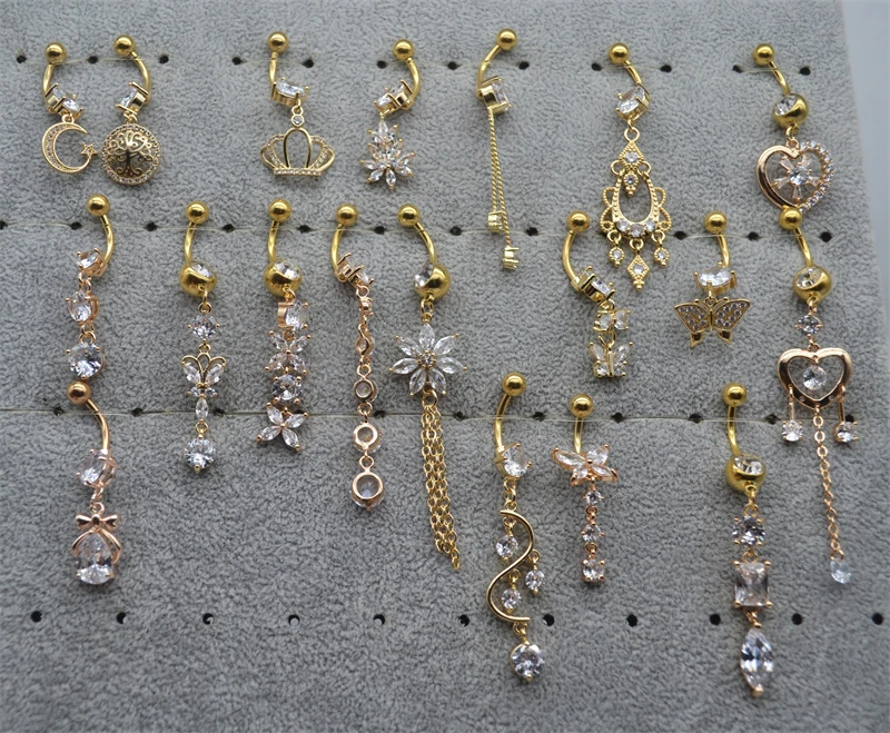 Пирсинг для пупка с кристаллами циркония, 20 шт.лот