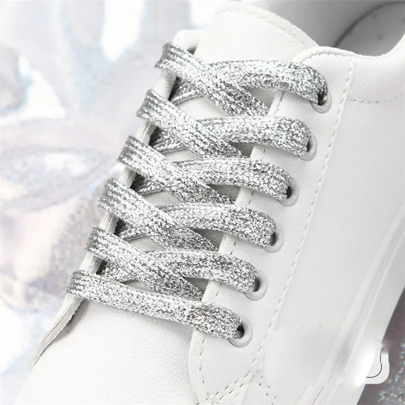 Блестящие белые шнурки для кроссовок, металлические блестящие плоск...