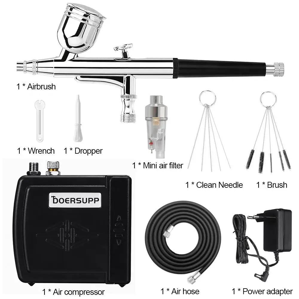Аэрограф с компрессором и функцией автоостановки, 7 куб. См, 0,3 мм, краскопульт двойного действия для моделирования, рисования тортов, нейл-арта