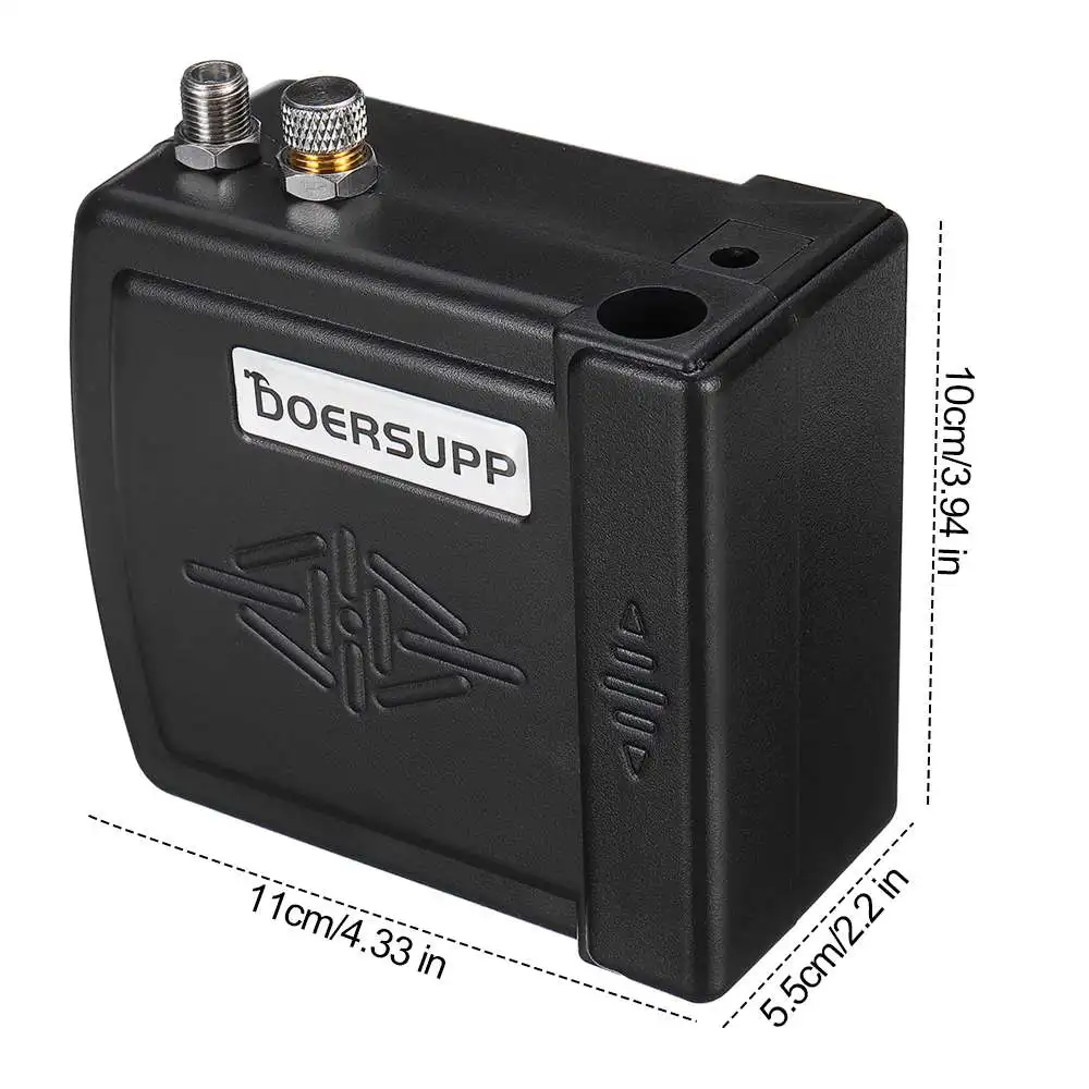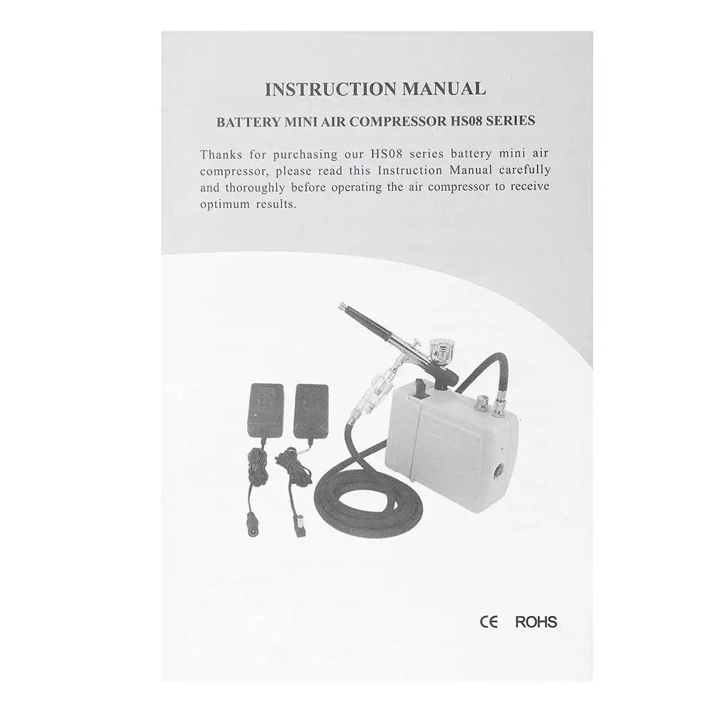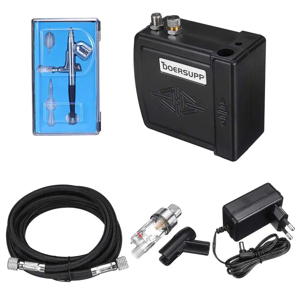 Посылка включает в себя:1 * воздушный компрессор1 * аэрограф1 * Адаптер питания1 * воздушный шланг1 * Мини Воздушный Фильтр1 * держатель1 * капельница1 * гаечный ключ сопла1 * Чистая иголка1 * кистьОсобенности товара:Цвет: черныйДвигатель: 12 В постоянного токаПоток воздуха: 10.5л/минАвтоматическая остановка: 21psiАвтозапуск: 15psiРабочее давление: 2-15psiВход: AC100-240V 50/60HZ 0.6AВыход: 12 В постоянного тока 1.6AЕмкость стакана жидкости: 7cc / 0.43cu inНоминальное напряжение: 12VX10cell 2000manАэрограф Размеры: 15,5 см/6,1 ВРазмер воздушного компрессора (LxHxW): 11x10x5.5 см/4,33x3,94x2,2 дюймовМатериал: алюминий + медь + резина + нейлон + пластикВремя полной зарядки: около 4 часов (Автоматическое отключение питания при полной зарядке) Время работы после полной зарядки: 90 минПреимущество:1. Подходит для аэрографии диаметром 0,2-0,5 мм, идеально подходит для косметика, косметика и так далее;2. Переменный ток. Постоянного тока с двумя выходами для выбора; AC100V-240V 、 50/60HZ автоматическое преобразование DC12V3. Функция автоматической остановки;4. Может начинаться с давления и непрерывной работы:5. Рабочее давление регулируется:6,360 градусов обрезает держатель Аэрограф, для вашей удобной работы.7. После полной зарядки аккумулятора светильник зарядного устройства может быть красного или зеленого цвета.8. Исполнительный стандарт: CE, GS, ROHS, ETLОсобенности:-Включает в себя портативный воздушный компрессор, воздушный шланг, двойного действия гравитационный питательный Аэрограф, мини воздушный фильтр, держатель, гаечный ключ и капельница.-Pro двойного действия гравитационный питательный Аэрограф набор для хобби краски ремесла.-Аэрограф для изготовления моделей, украшения тортов, нарисуйте контур камуфляжа, татуировки гвоздь и т. д.-Довольно Прочный мини воздушный компрессор, портативный светильник, вес и легко носить с собой.-Экономьте гораздо больше времени, чем Рисование ручной работы, и отлично подходит для вашего бизнеса с распылителем.-Конструкция двойного действия экономит сырье и долговечность.-Широко используется энтузиастами общей модели.-Этот мини-компрессор использует специальную конструкцию без масла. Это не масло делает среднюю передачу не загрязненной. Выходная жидкость устойчива и диапазон давления от 0 до 21 psi.-Этот профессиональный комплект воздушного компрессора airbrush широко используется в производстве моделей, украшении тортов, татуировках, Нейл-Арте и т. д. Идеально подходит для художественных работ, красоты ногтей, боди-арта, дизайнерской живописи, модельной живописи, украшения тортов, ремесел, моделей и изобразительного искусства, таких как рисование автомобиля, текстиль и футболка.Направление работы:1. Когда в рабочем состоянии воздушный компрессор переменного тока, пожалуйста, поставьте штепсельную вилку трансформатора переменного тока в разъем питания компрессора, и подключите к сети переменного тока одновременно, и используйте заднюю крышку переменного тока.2. Когда вы работаете с воздушным компрессором постоянного тока, пожалуйста, зарядите аккумулятор перед использованием, затем поместите батарею в аккумуляторную коробку (задняя крышка постоянного тока) и подключите к воздушному компрессору; Вставьте батарею в разъем питания компрессора.3. Подключите выход воздушного компрессора с воздушным шлангом: Подключите воздушный шланг с HS-F4 мини-фильтром (если он есть), и мини-