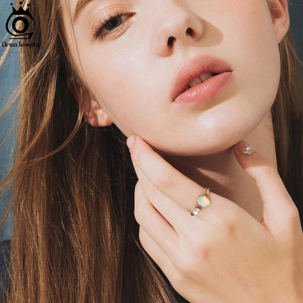 ORSA JEWELS 925 пробы серебро ручной работы 100% натуральный опал и Freashwater жемчужное кольцо модное кольцо GMR02Применение: свидание/на каждый день/Свадьба/Юбилей/предложение