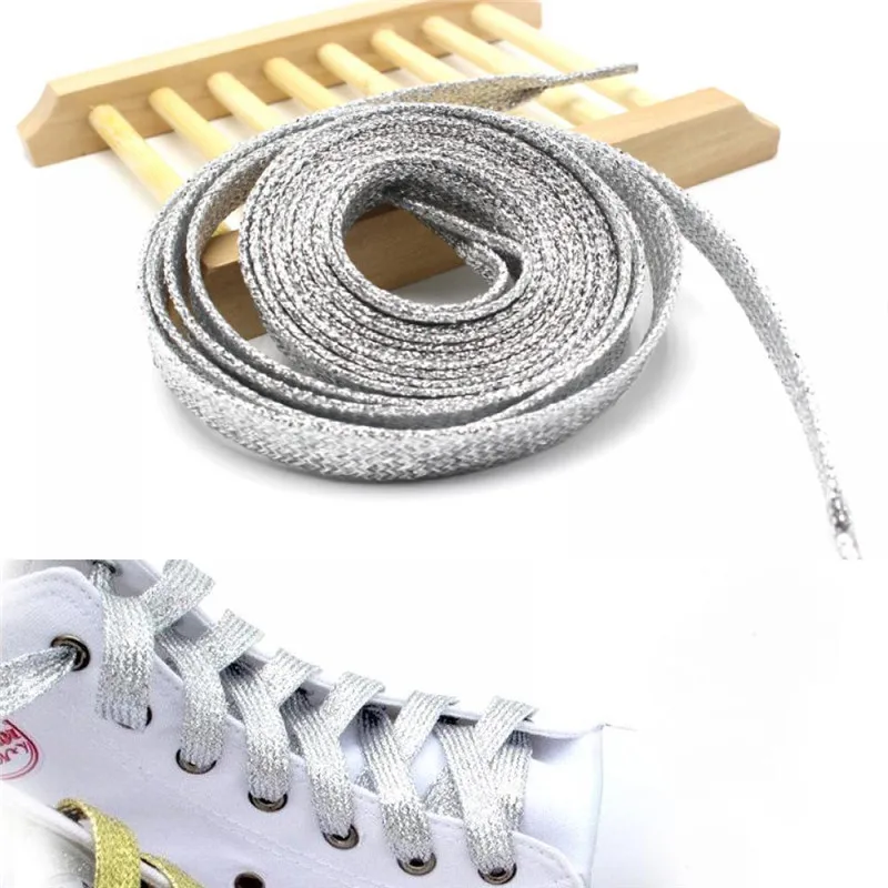1 пара, серебристые шнурки для кроссовок, шириной 1 см