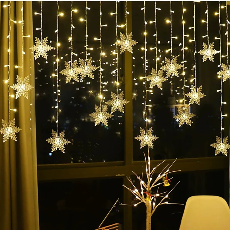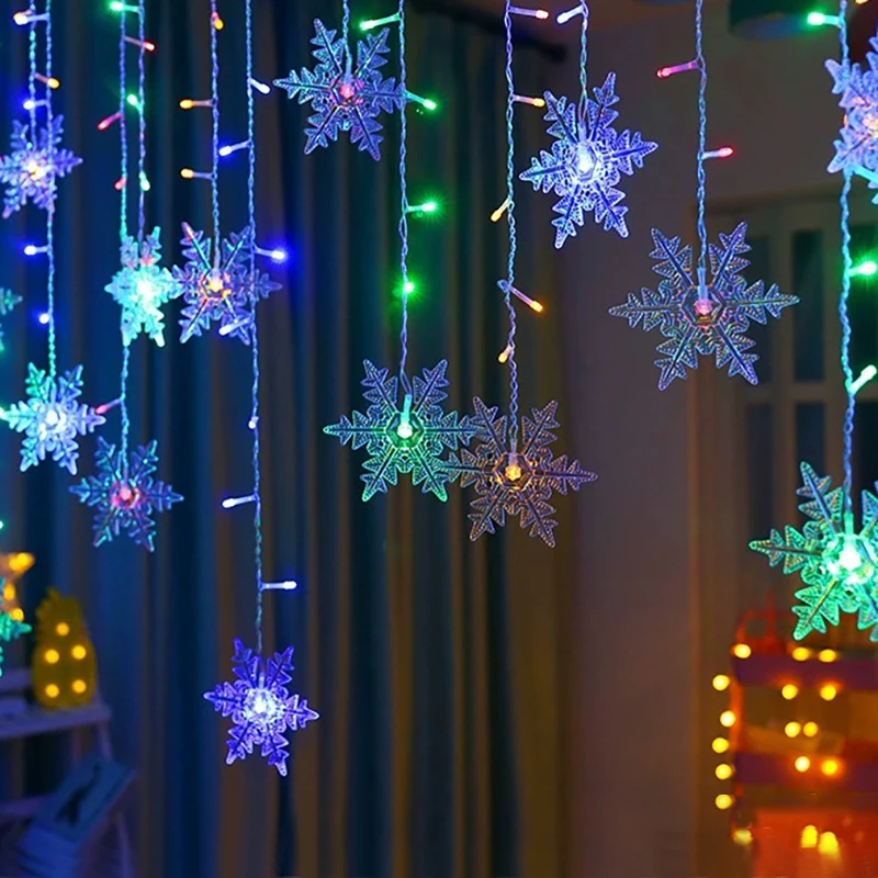 Рождественская светодиодная сказочная гирлянда, светящаяся Рождественская гирлянда в виде снежинок, занавеска, цветная гирлянсветильник для новогоднего украшения