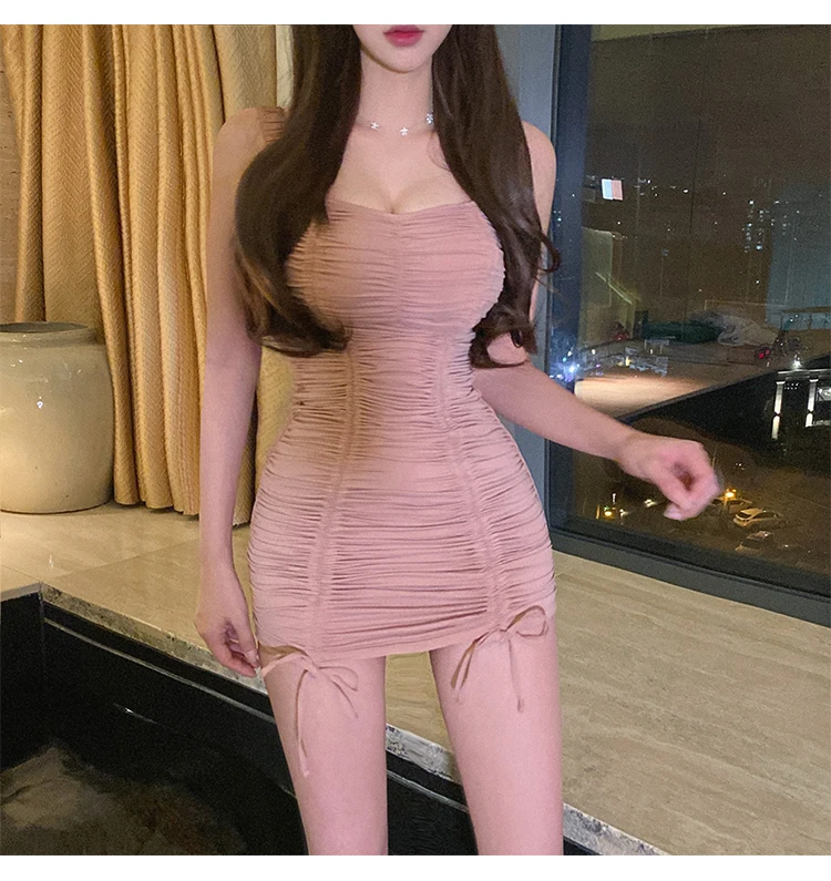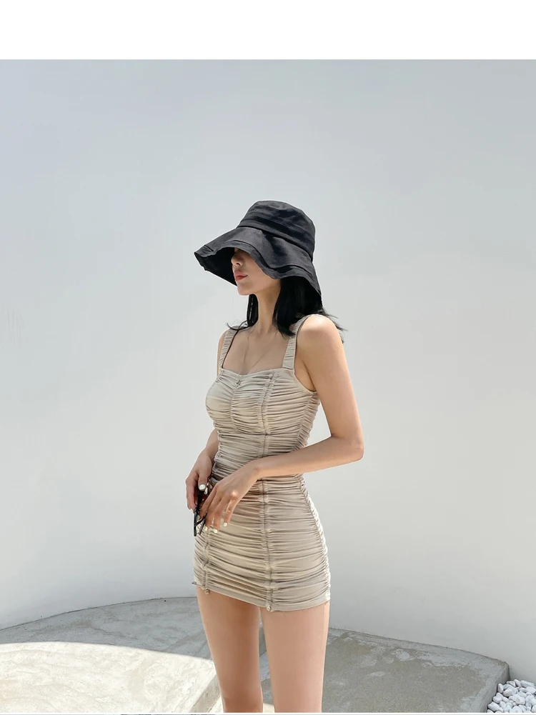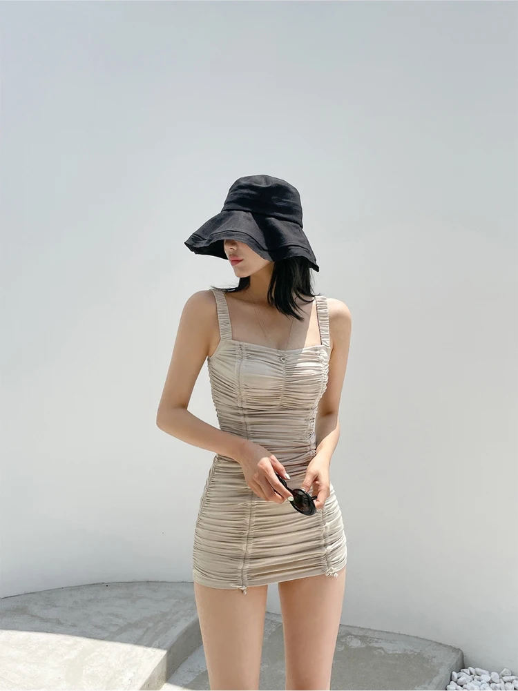Пикантный плиссированный слитный купальник, Женский однотонный беже...