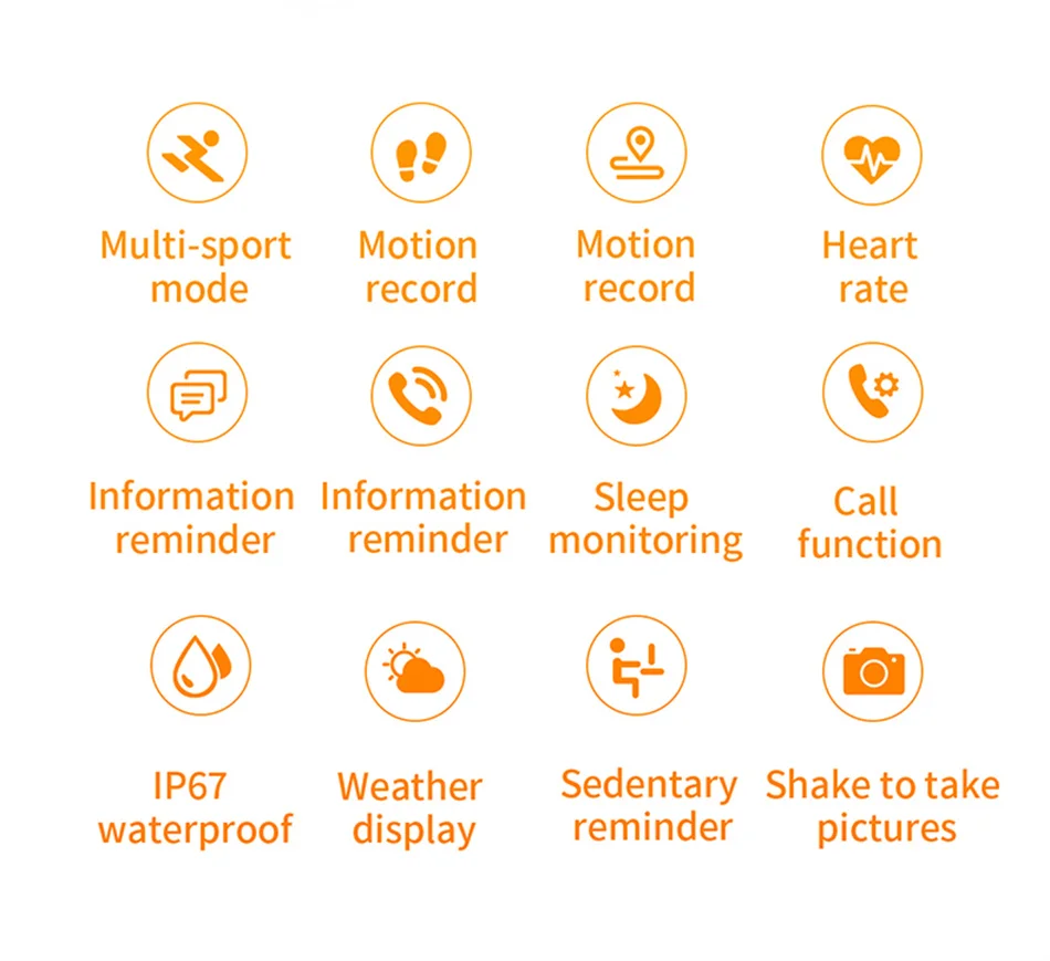 Основная функция шаг, расстояние, калории, пульс/кровяное давление/кислород, BT вызов, BT Музыка, температура, мониторинг сна, напоминание о звонке, SMS оповещения, соцприложение напоминание о сообщениях, напоминание о будильнике, напоминание о сидячем положении, спорт, поворот запястья и Блеск экрана, поиск браслетов, поиск телефонов, удаленная фотография, отказ от звонков, не беспокоить, пользовательский циферблат, social APP напоминание о сообщениях WeChat, QQ, Facebook, Twitter, Line, Whatsapp, Instagram... Мульти-спорт открытый и закрытый прыжок, бег, situp, футбол, баскетбол, бадминтон, альпинизм и т. Д.