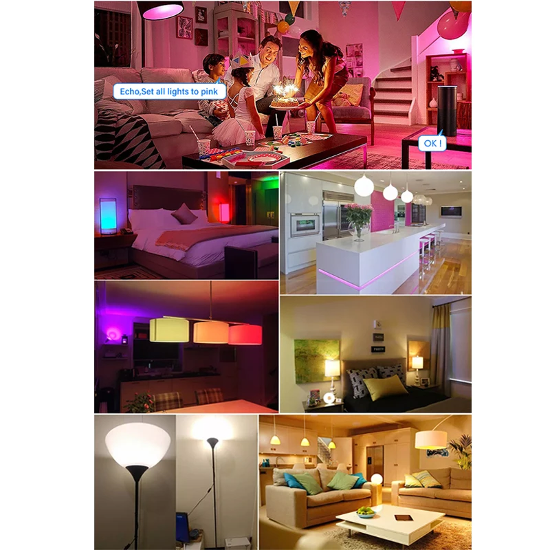 9 Вт 850lm умная лампа с цоколем E27/E26/B22, эквивалентная 50 Вт традиционным лампам накаливания. Экономит до 80% энергии, дольше и экономит энергию.