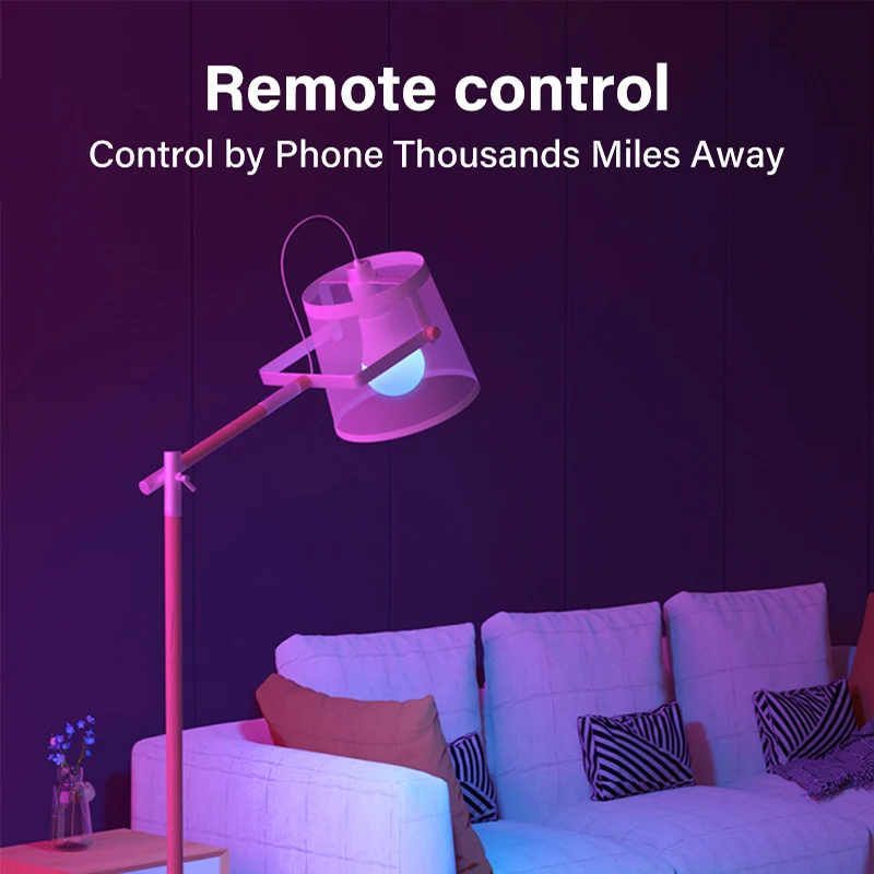 Держите подключив этот Wi-Fi умный светильник лампочка с вашей домашней сети (поддерживает только 2,4 ГГц Wi-Fi), вы можете удаленно Контролируйте умный Светильник лампы на вашем смартфоне имитации в тех случаях, когда вы выходите из дома, В доме есть люди. Функция группового управления позволяет управлять более чем одной умной лампой-светильник одновременно для настройки сцены.