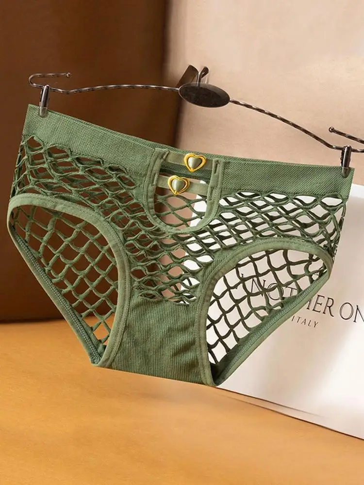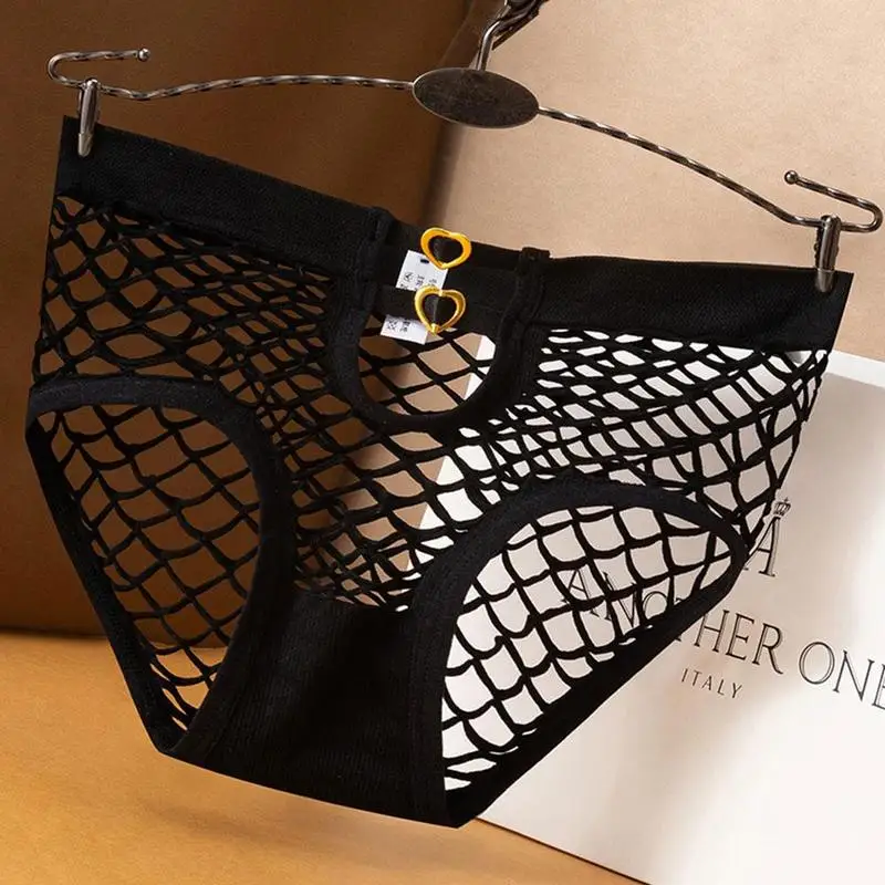 Женские трусики, сексуальные хлопковые трусы со средней талией, нижнее белье в сетку, Эротическое эластичное нижнее белье с вырезами, высокий дизайн