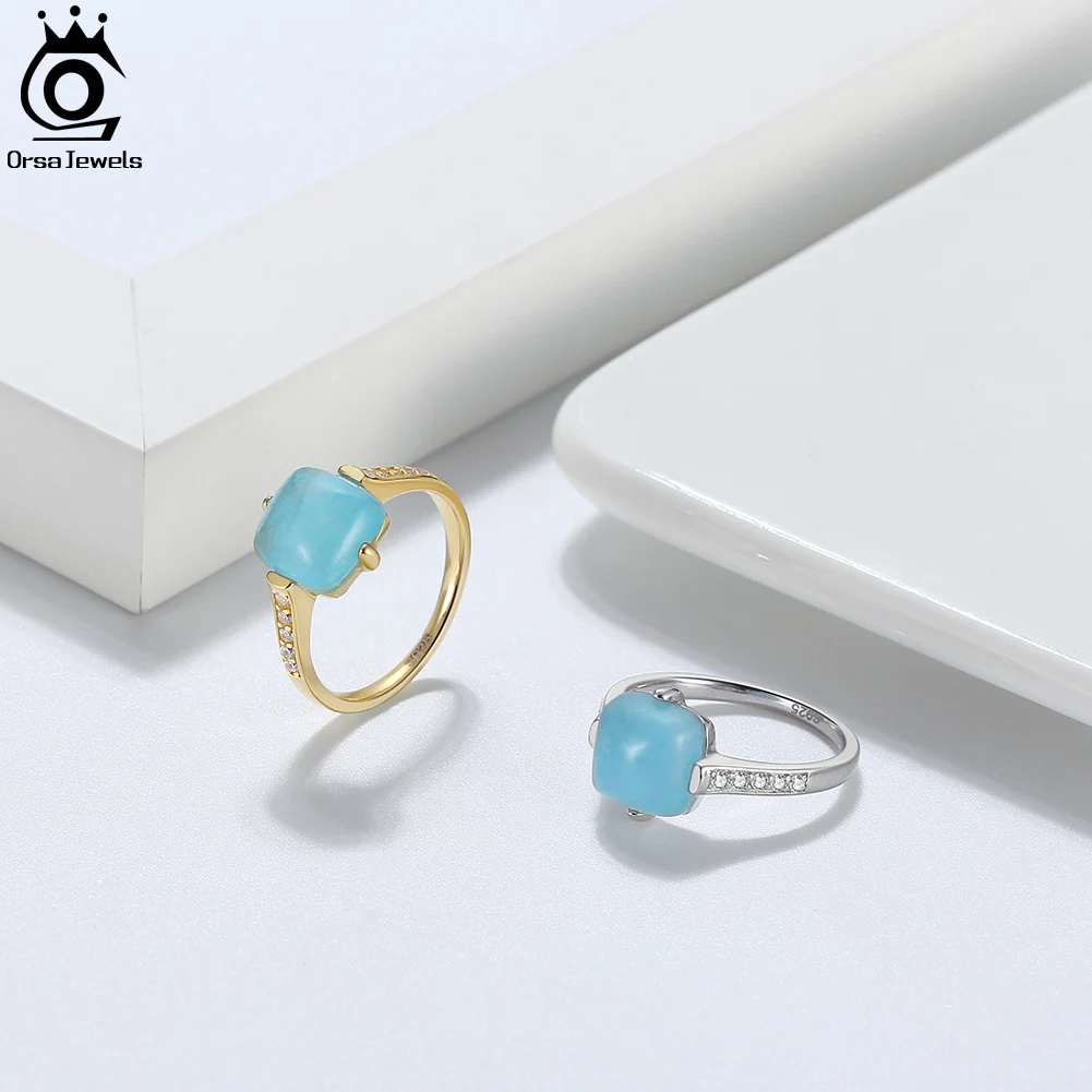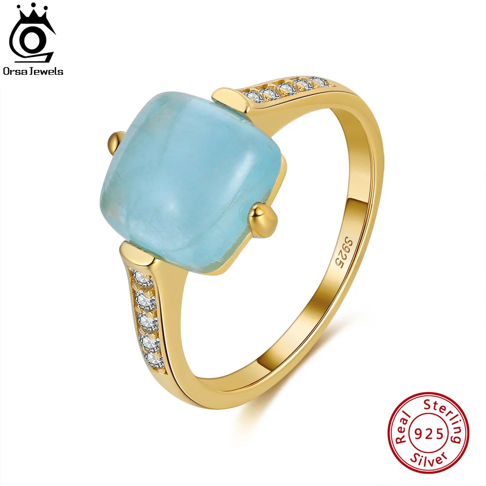 ORSA JEWELS 100% Натуральный аквамарин, 925 пробы, серебро, драгоценный камень, кольца на палец для женщин, элегантное Драгоценное кольцо, ювелирное изделие GMR07