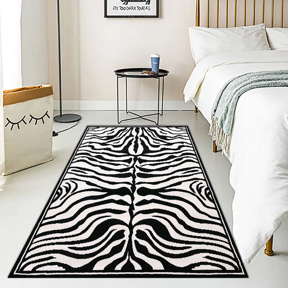 Коврик с зеброй, черный, белый, с принтом шкур животных, коврик для гостиной, прикроватный ковер, современное украшение для дома, диван для спальни, нескользящие ковры
