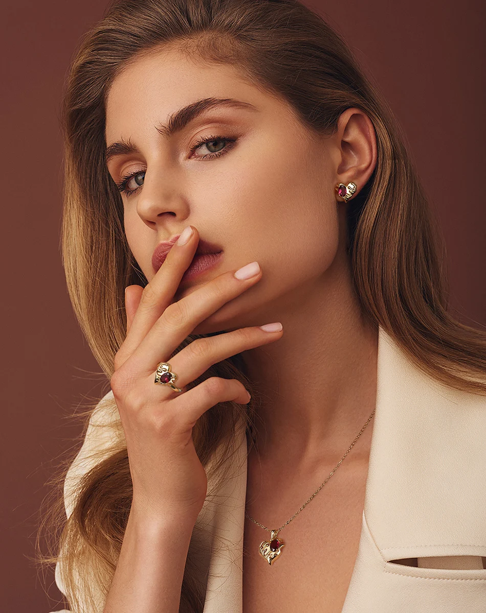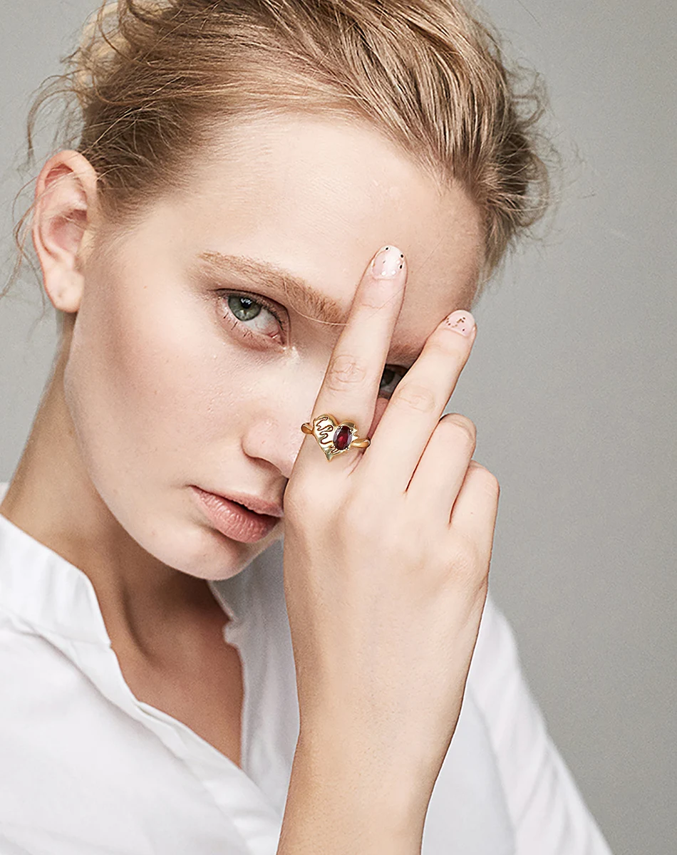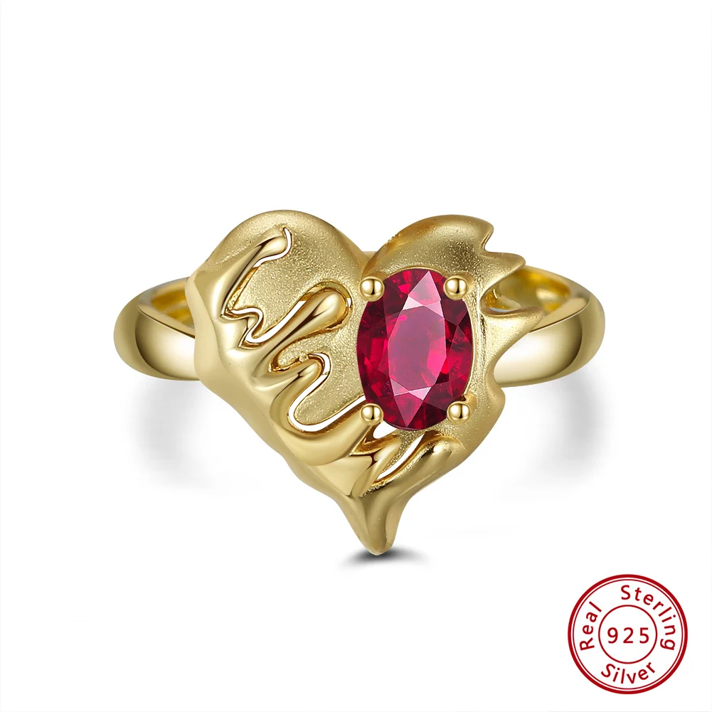 Женское кольцо с природным драгоценным камнем, в форме сердца