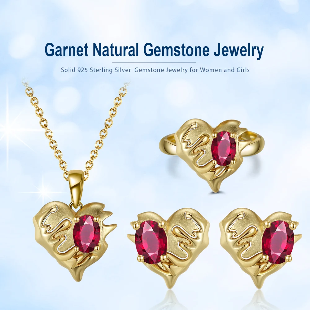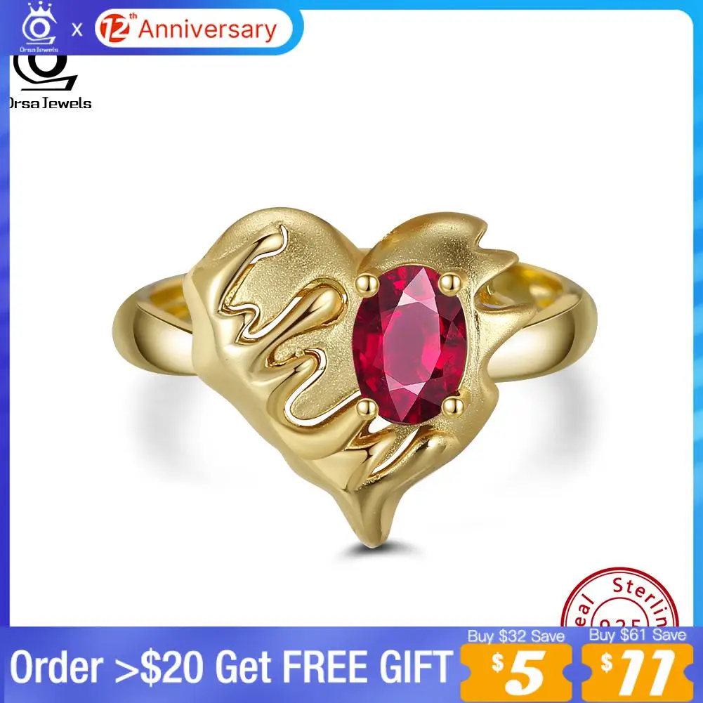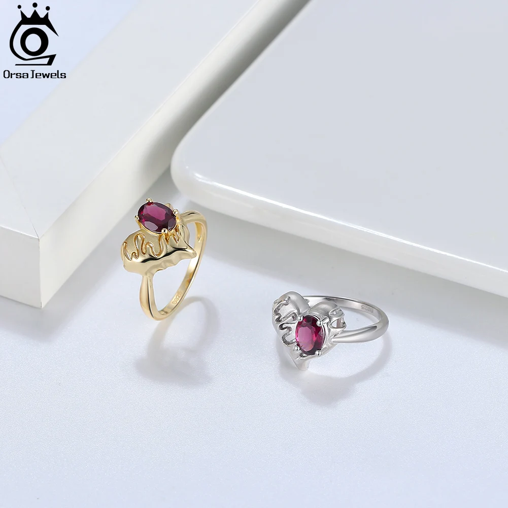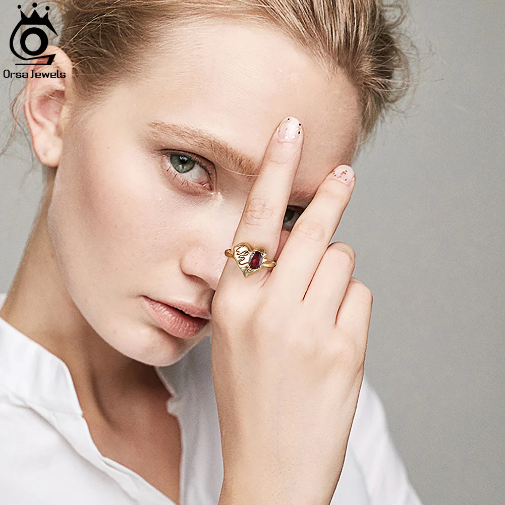 ORSA JEWELS 100% натуральный гранат натуральный драгоценный камень кольцо для женщин ручной работы из стерлингового серебра 925 пробы кольцо в форме сердца ювелирные изделия GMR05Применение: свидание/на каждый день/Свадьба/Юбилей/предложение