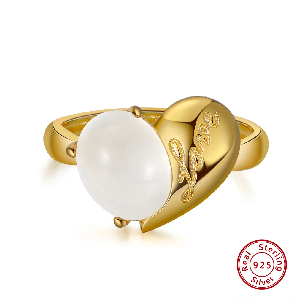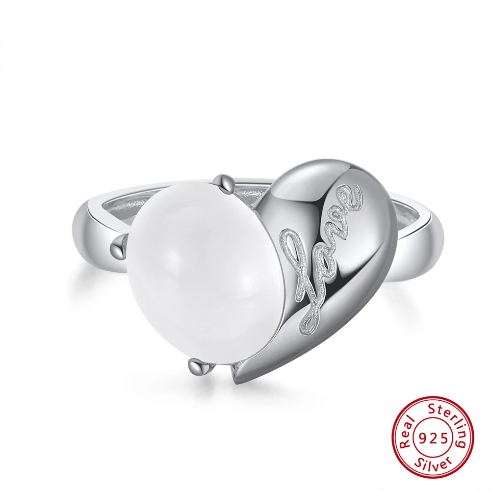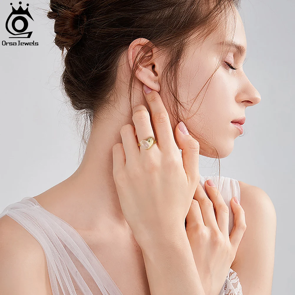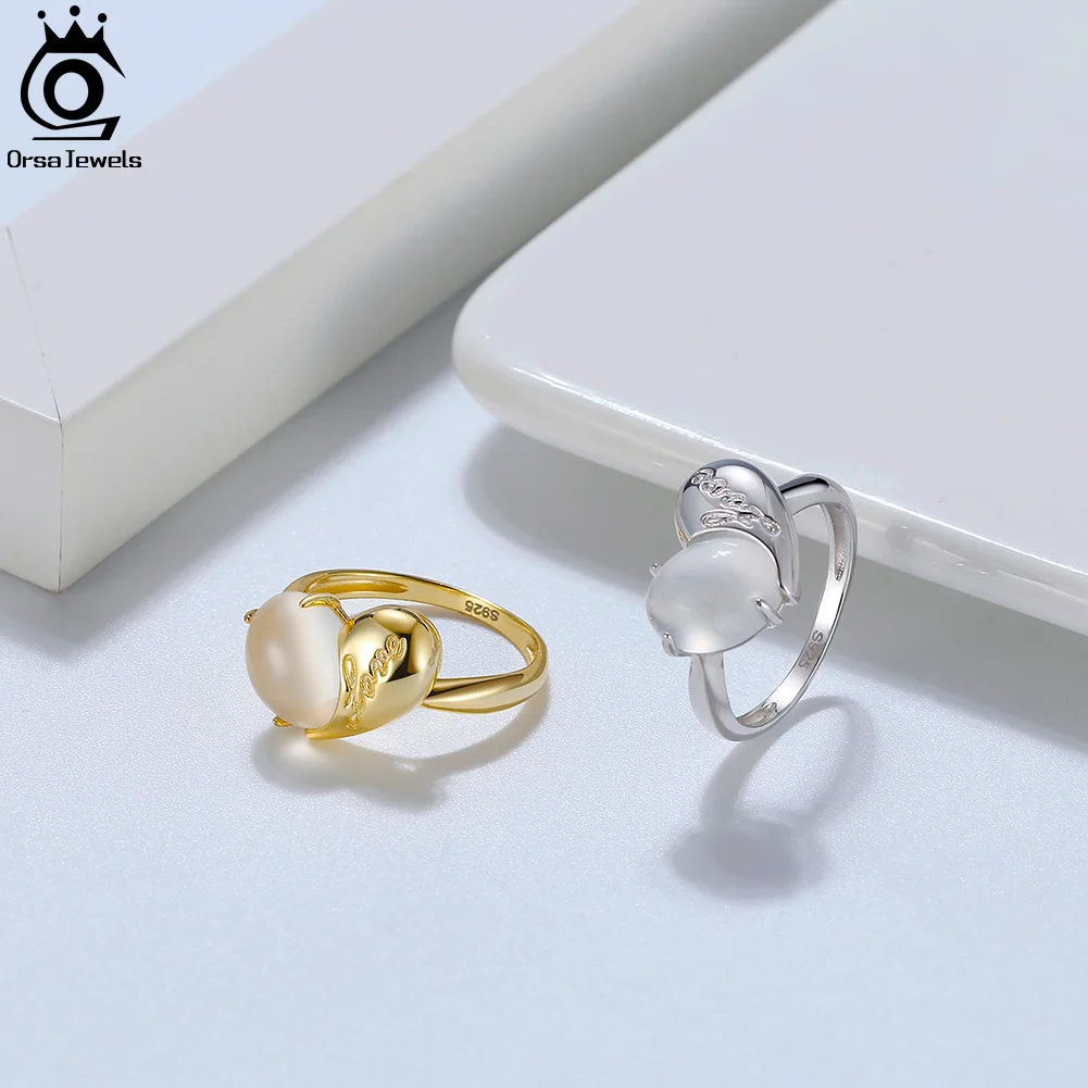 ORSA JEWELS 925 пробы Серебряное кольцо с натуральным лунным камнем в форме сердца 8x10 мм овальная форма Лунный Камень Элегантный Драгоценный Камень Обручальное кольцо GMR06