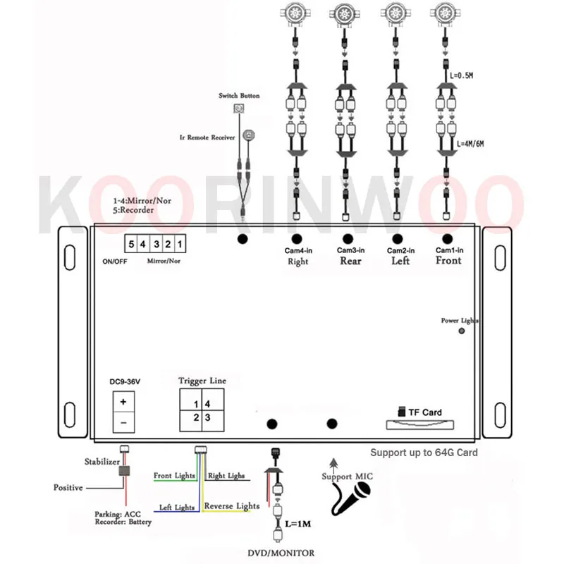 Koorinwoo переключатель 360 DVR система парковки 4-канальный раздел...