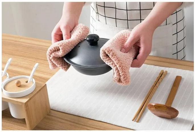 Домашние полотенца для посуды из кораллового флиса 25*25 см, уплотненная тряпка для водопоглощения, антипригарное масло, кухонная Ткань для очистки