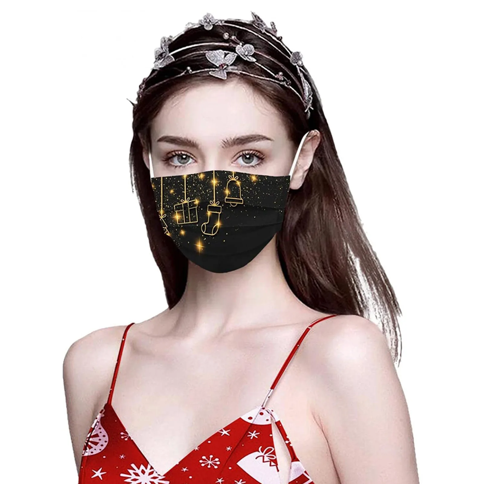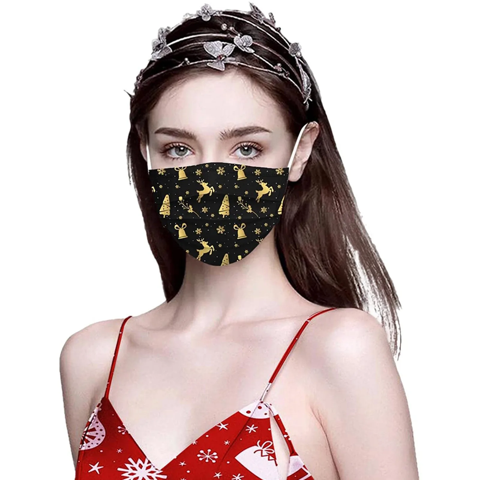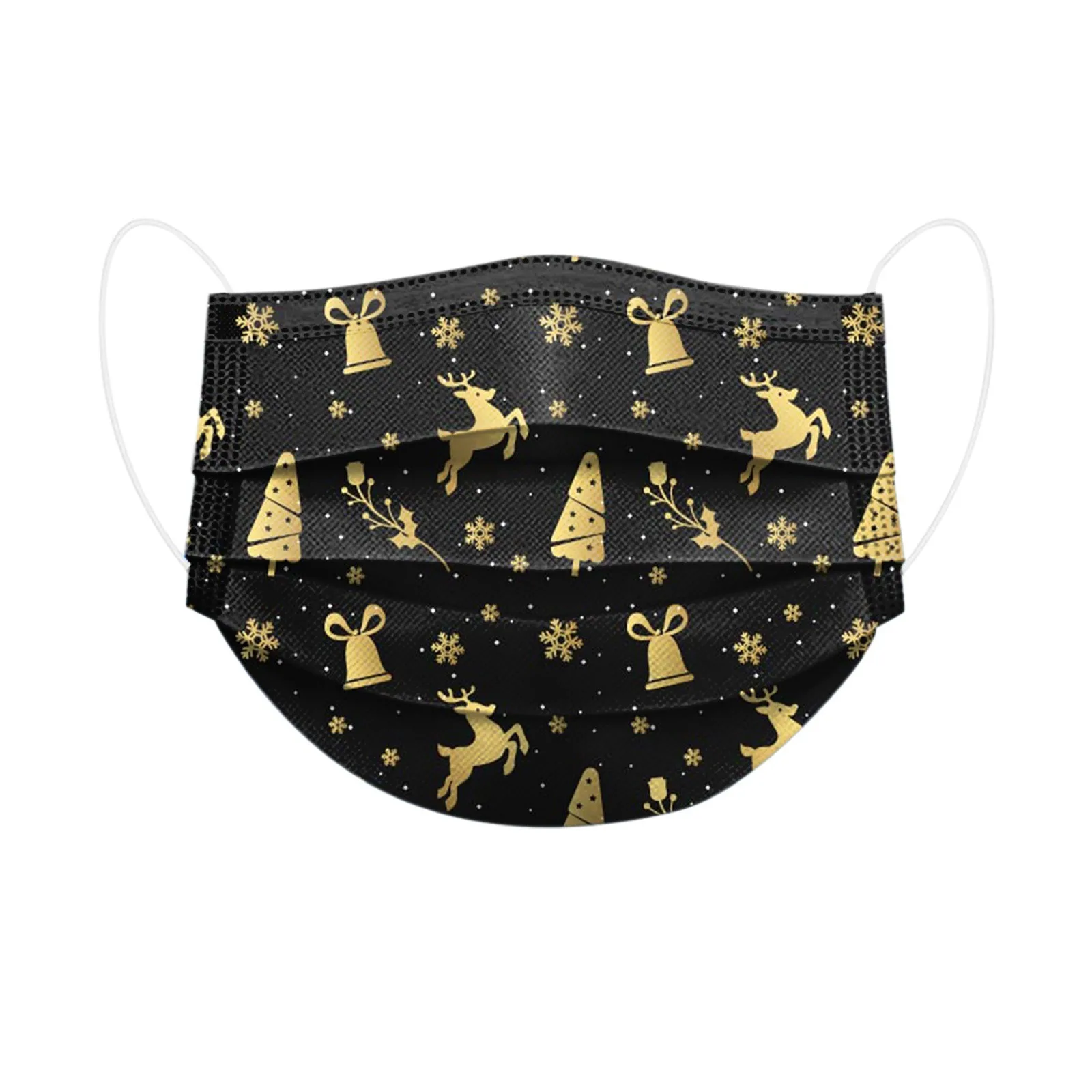 10 шт взрослых одноразовые рождественские маски, маскарильяс, золотой лося печати черная маска, маскарилья navidad , Mascherine Mascarillas negra
