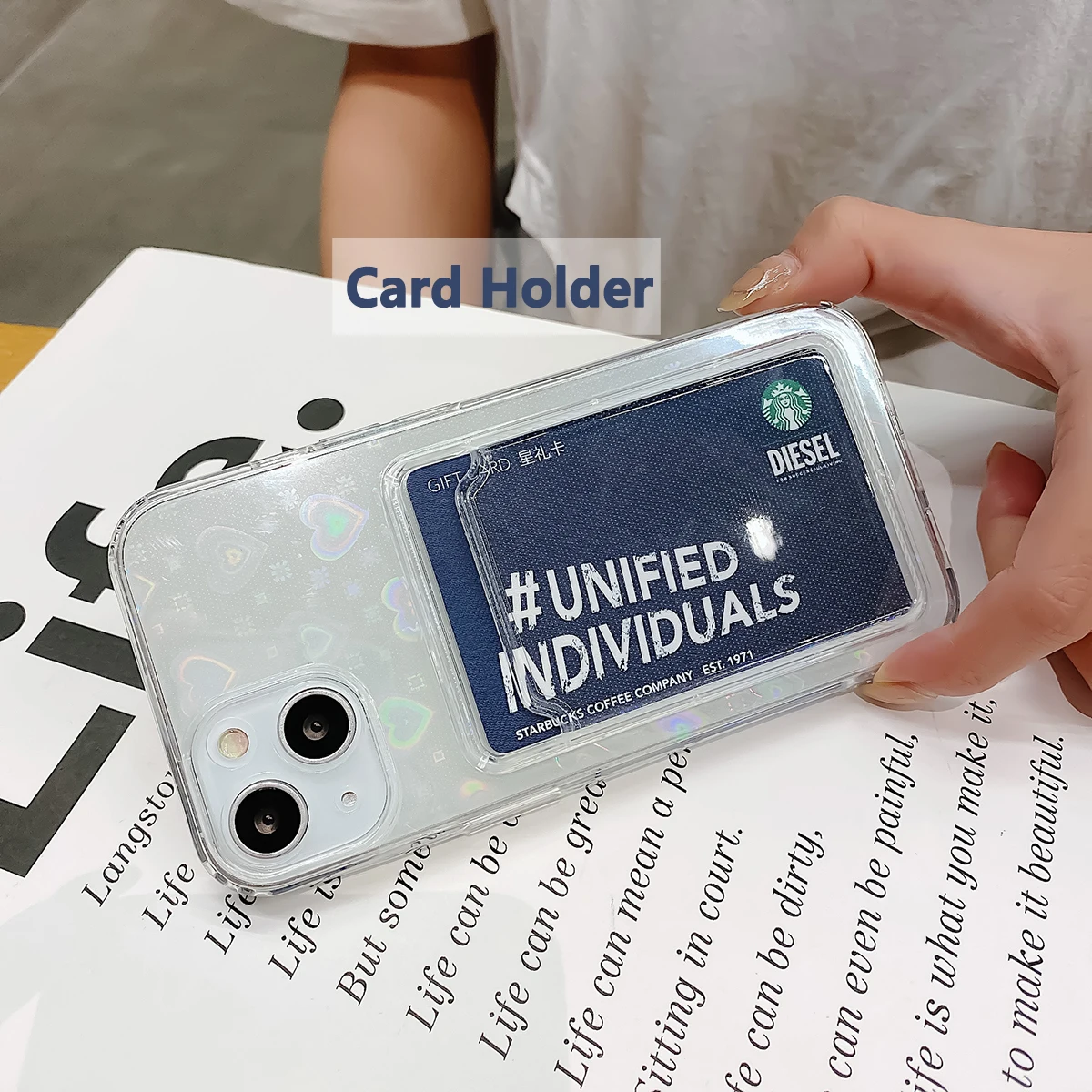 Прозрачный цветной лазерный кошелек с сердечками для IPhone 13, 12,...